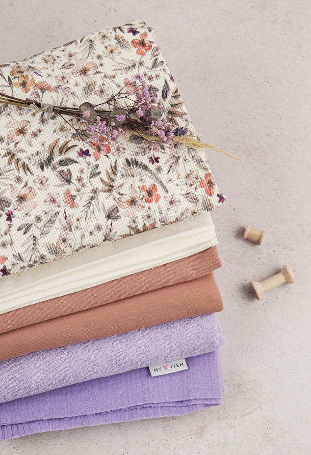 Bei uns findest du sorgsam ausgewählte und qualitativ hochwertige Stoffe – ganz egal ob unifarben oder mit herzallerliebsten Printmotiven. Unser Portfolio reicht von verschiedenen Jerseys wie Single Jersey, Waffel Jersey und Rippenjersey über Bündchen, Baumwollstoffe, Cord, Leinen, Musselin bis hin zu Walk. Zudem findest du in unserem Shop Sweatshirtstoffe für alle Jahreszeiten und Tüllstoffe für märchenhaft schöne Kleider, Kostüme oder Röcke. Darüber hinaus führen wir auch zahlreiche Stoffe aus Bio-Baumwolle wie Kinderstoffe und Babystoffe in großer Auswahl. Erfahre dazu mehr in der Produktwelt Organic Fabrics. Alle Stoffe verkaufen wir als Meterware ab 0,5 Meter. Als Ergänzung dazu kannst du bei uns wunderschönes Nähzubehör online kaufen. Du suchst nach den farblich passenden Nähgarnen oder Overlockgarnen? Du benötigst Nähutensilien wie beispielsweise Markierstifte, um süße Accessoires anzubringen? Oder möchtest du deinen Nähprojekten mit Labels, Knöpfen und Bändern einen Pepp verleihen? Dann bist du hier genau richtig. Tauche ein in unsere Produktwelten und entdecke wunderschöne Stoffe, Schnittmuster, Plottermotive, Zutaten und vieles mehr.