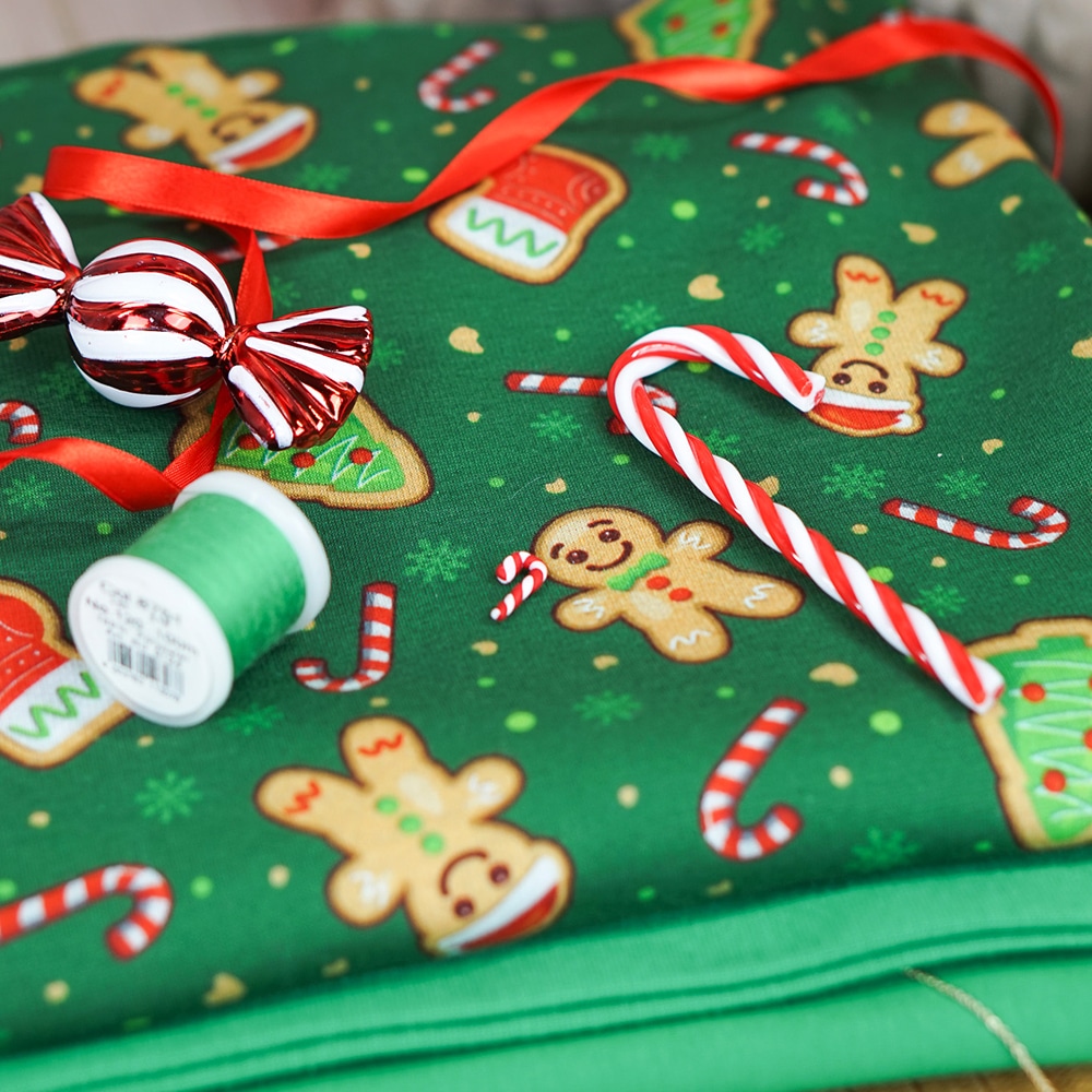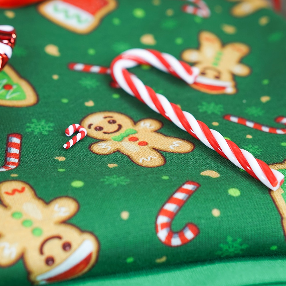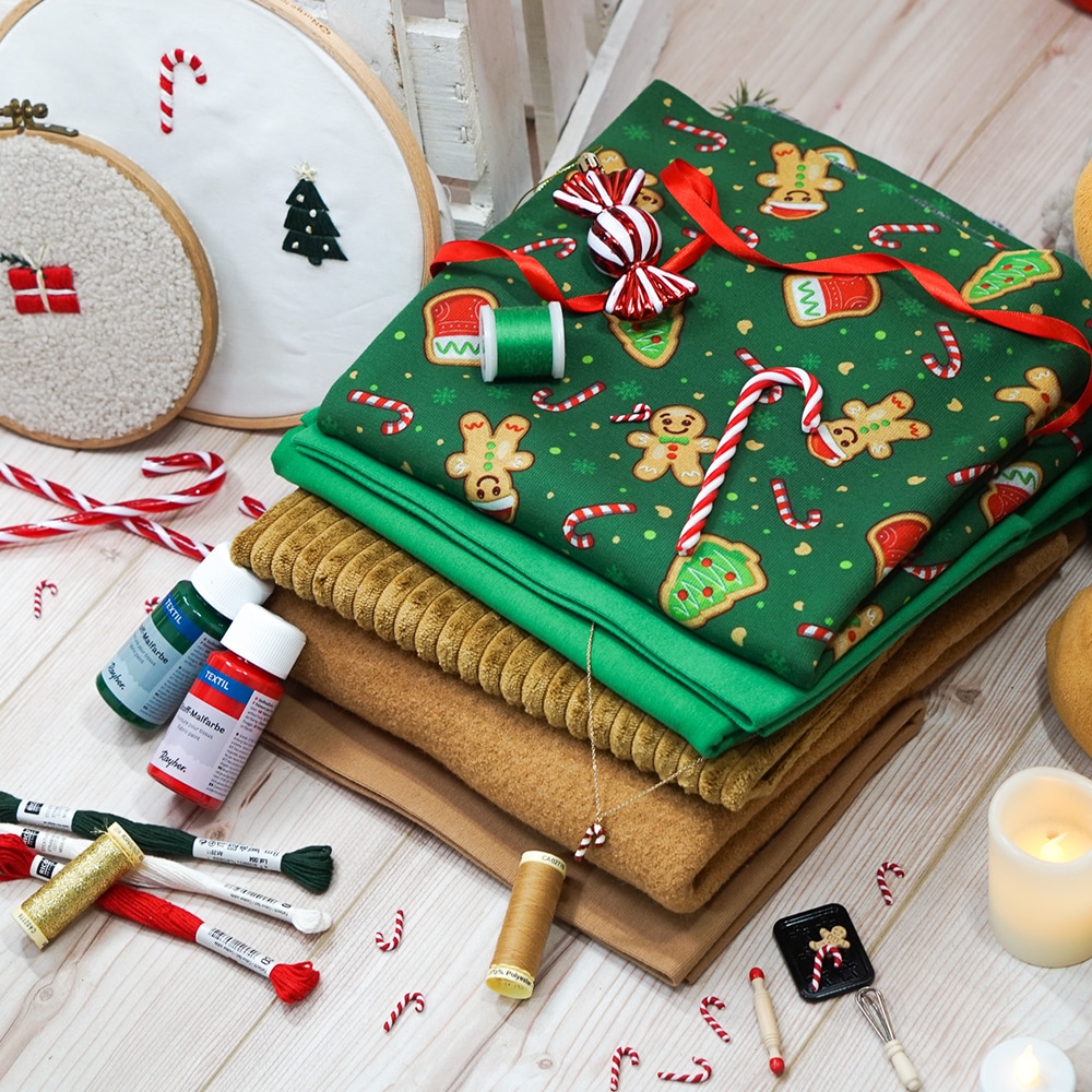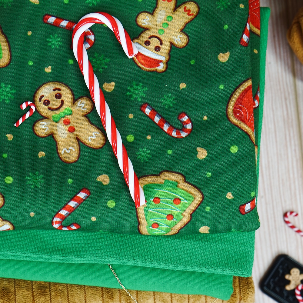 Dieser festliche Alpenfleece versprüht pure Weihnachtsfreude! Das liebevolle Gingerbread-Design mit kleinen Lebkuchenfiguren, Zuckerstangen, Schneeflöckchen und winterlichen Mustern macht ihn zum perfekten Begleiter für die Adventszeit. Der Alpenfleece verfügt über die selben Eigenschaften wie leichter Kuschelsweat – doch kennzeichnet ihn auf der linken Stoffseite das Fleece, welches wie ein wärmendes Futter ist. Die rechte Seite hingegen ist, wie bei den meisten Kuschelsweats, glatt. Der kuschlige Alpenfleece bietet einen angenehmen Tragekomfort und fällt fließend weich.