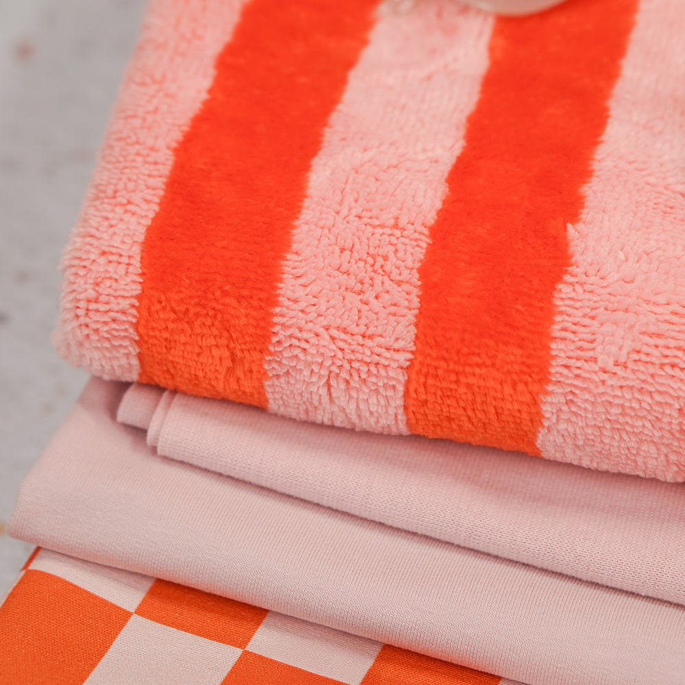 Bambus Frottee – Streifen – Rosa & Dunkles Orange