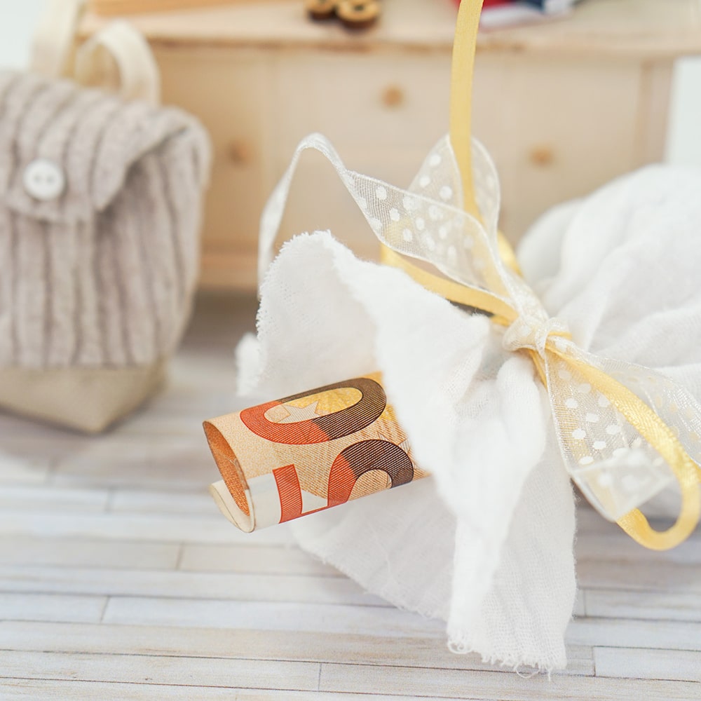 Der kleine Rucksack eignet sich ideal für kleine Überraschungen, Süßigkeiten oder ein Geldgeschenk und kann ganz nach Wunsch befüllt werden.
