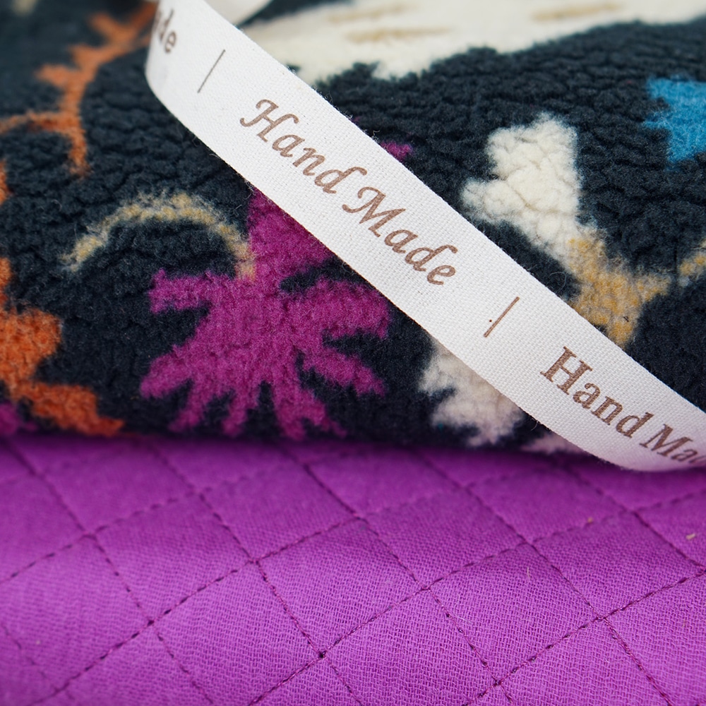 Mit dem Baumwollband „Handmade“ können Highlights an euren selbst genähten Projekten gesetzt werden. Auch als Kordel an Hoodies oder Jogginghosen ist das leicht fallende zarte Band bestens geeignet.
