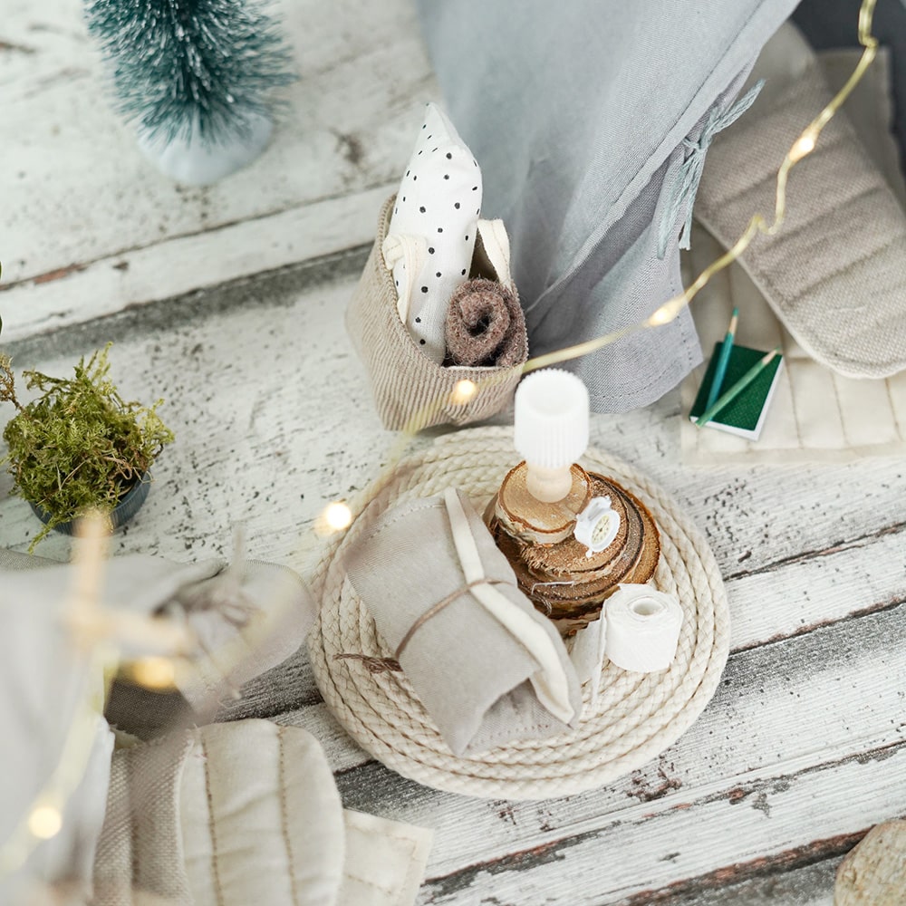 - Nach einem langen Tag voller Abenteuer zieht sich der Wichtel in sein gemütliches Zelt aus Baumwollstoff zurück – sein kleines Zuhause für traumhafte Nächte im Miniatur-Abenteuerland.