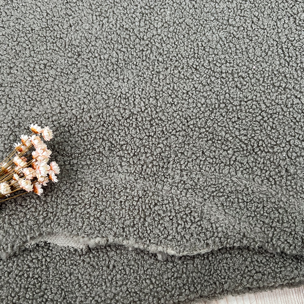 Dieser Bouclé Teddyfleece ist ein angenehm weicher Stoff, der als Futter- und Oberstoff verwendet werden kann. Bouclé ist das französische Wort für Schleife und so lässt sich die rechte Stoffseite auch am Besten beschreiben, denn das Garn wurde zu vielen kleinen Schleifen verarbeitet, sodass die typische grobe Teddy-Struktur entsteht. Diese erinnert optisch auch an kleine Knötchen. Wärmend, knitterarm und strapazierfähig sind weitere tolle Eigenschaften, weshalb sich der Fleece ideal für Nähprojekte wie Jacken, Mäntel, kuschelige Accessoires oder als Futterstoff eignet. Aber auch im Interiorbereich kann er wunderbar für Kuscheltiere, Kissen und Decken verwendet werden.