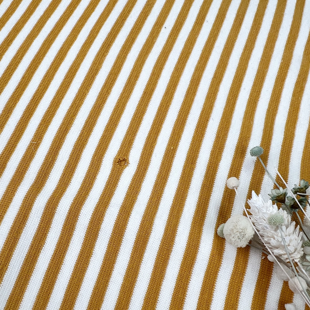Bündchen – Ockergelb/Weiß 5 mm Ringel – C-Ware