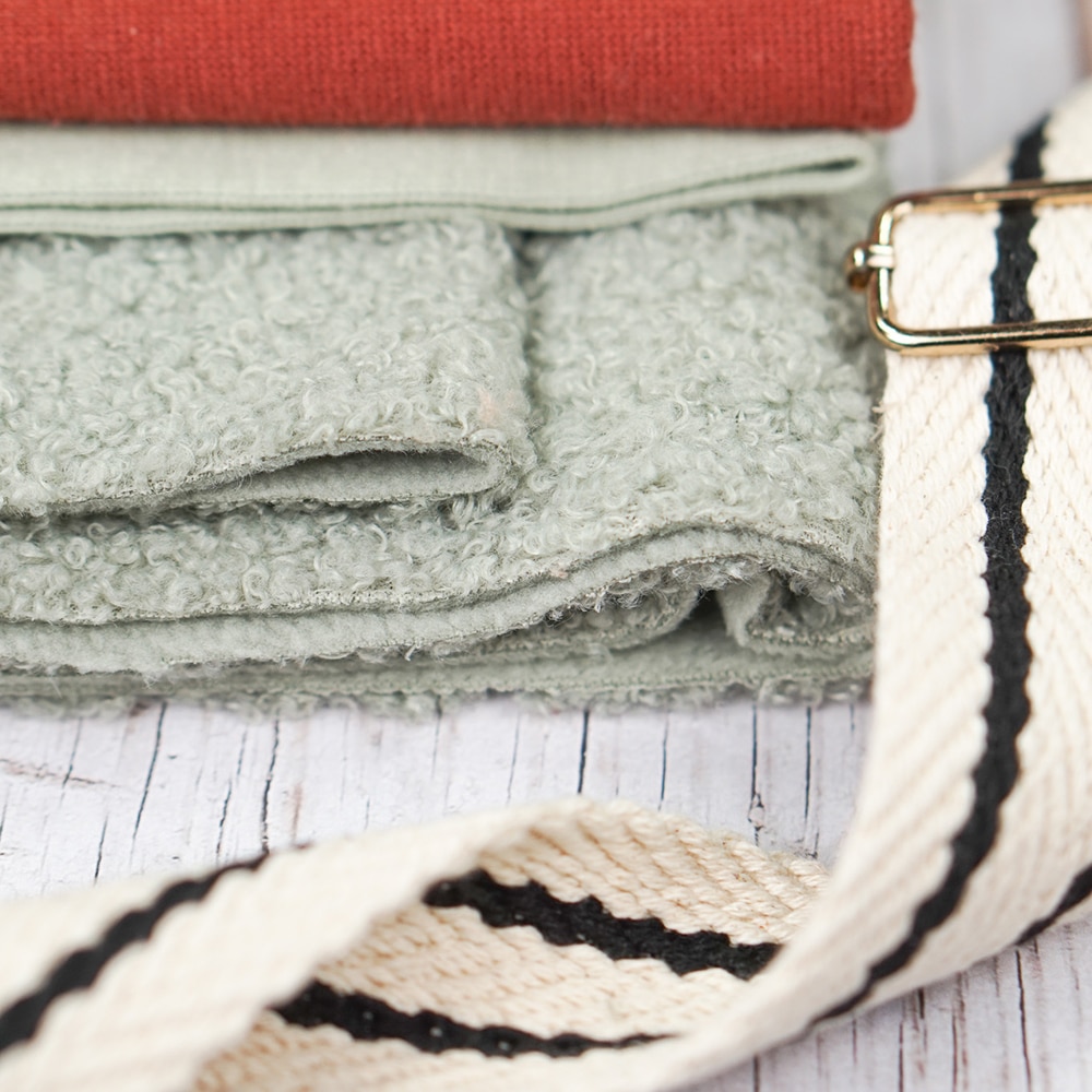 Dieser Double Face Bouclé Teddyfleece ist ein angenehm weicher Stoff, der durch seine kuschelige Fleece-Rückseite besonders wärmend und gemütlich ist. Bouclé ist das französische Wort für Schleife und so lässt sich die rechte Stoffseite auch am Besten beschreiben, denn das Garn wurde zu vielen kleinen Schleifen verarbeitet, sodass die typische grobe Teddy-Struktur entsteht. Diese erinnert optisch auch an kleine Knötchen. Wärmend, knitterarm und strapazierfähig sind weitere tolle Eigenschaften, weshalb sich der Fleece ideal für Nähprojekte wie Jacken, Mäntel, oder kuschelige Accessoires wie Handschuhe oder Schals eignet.