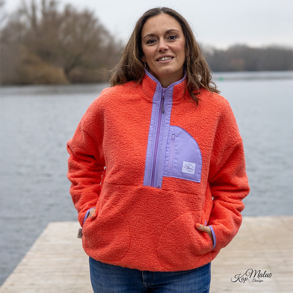 Dank der beiden weichen Stoffseiten, benötigt der Bouclé kein zusätzliches Futter und eignet sich auch hervorragend für dickere Projekte wie Sweater oder Troyer. Besonders schön wirkt er auch bei den Westen Wilmsy oder Winalea – einfach mit Paspelband einfassen, den Futterstoff weglassen und fertig ist der tolle Look.