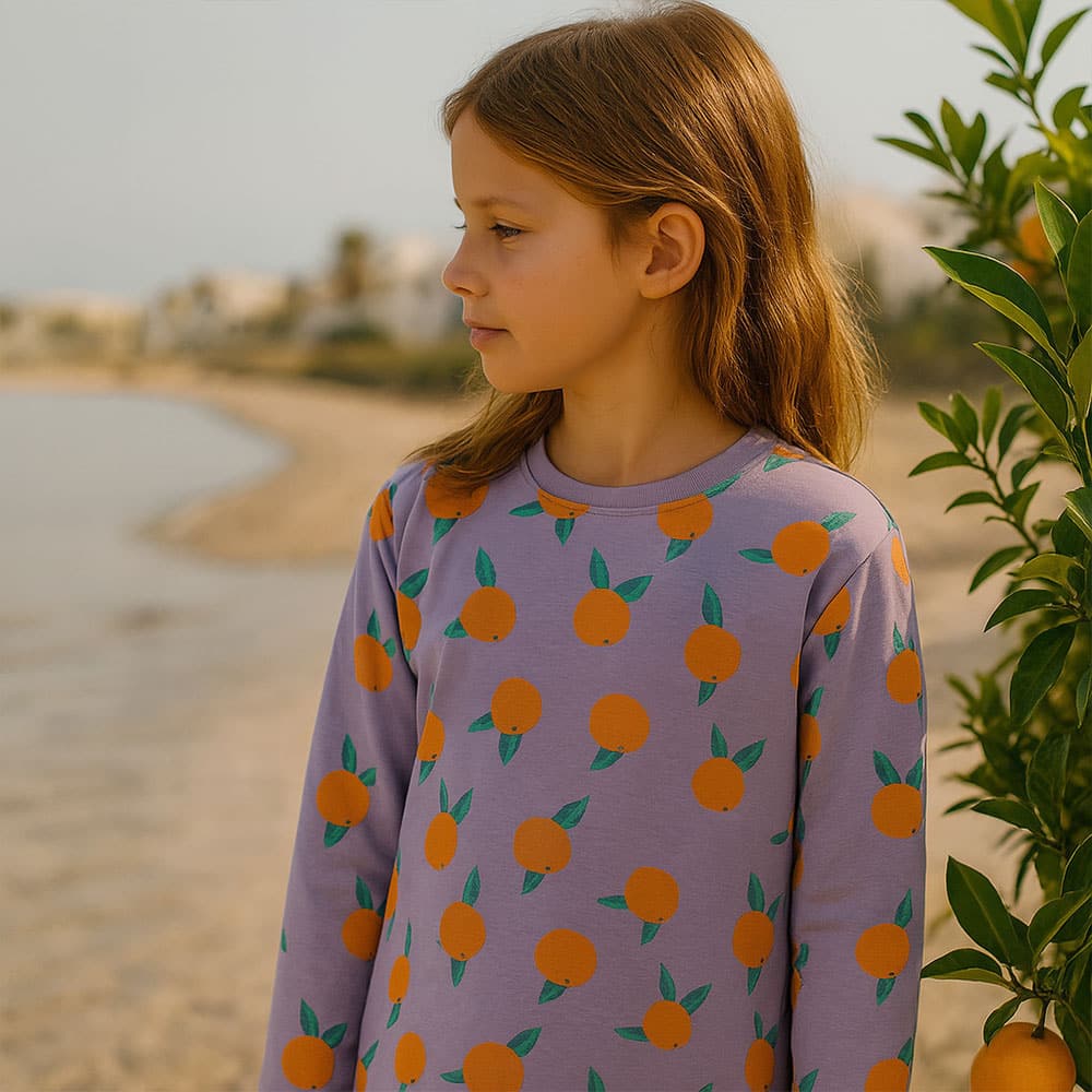 French Terry – Sommersweat – Orangen – Helles Smoky Lavendel