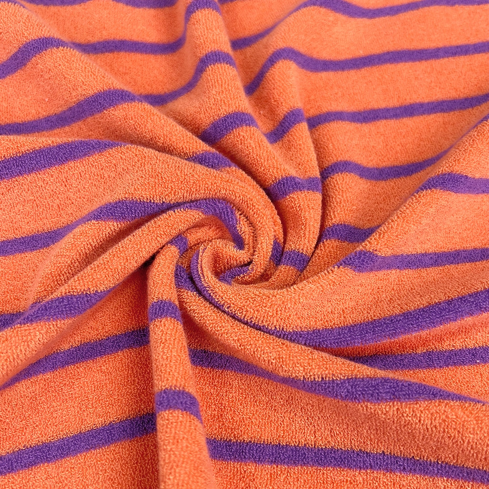 Frottee-Jersey – Streifen – Sunset Orange/Light Lilac