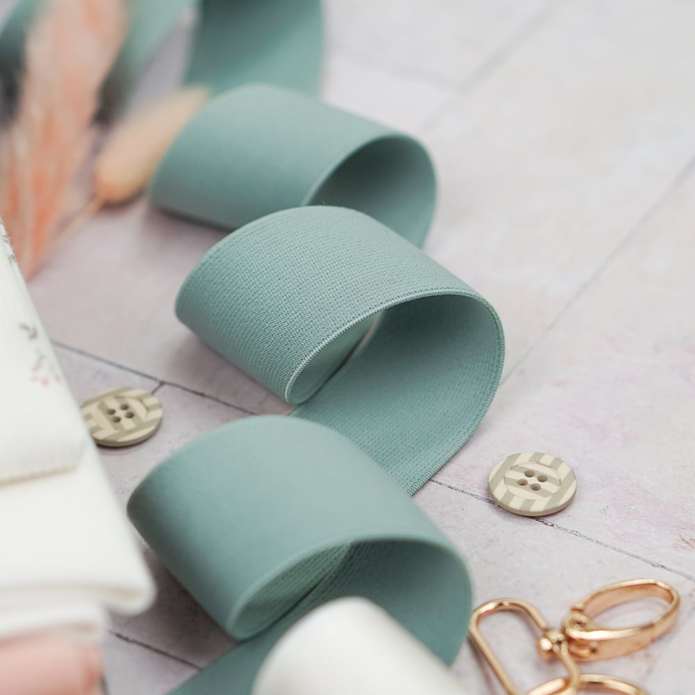 Start » Shop » Zutaten & Zubehör » Bänder und Kordeln » Gummiband – Altmintgrün – 40 mm