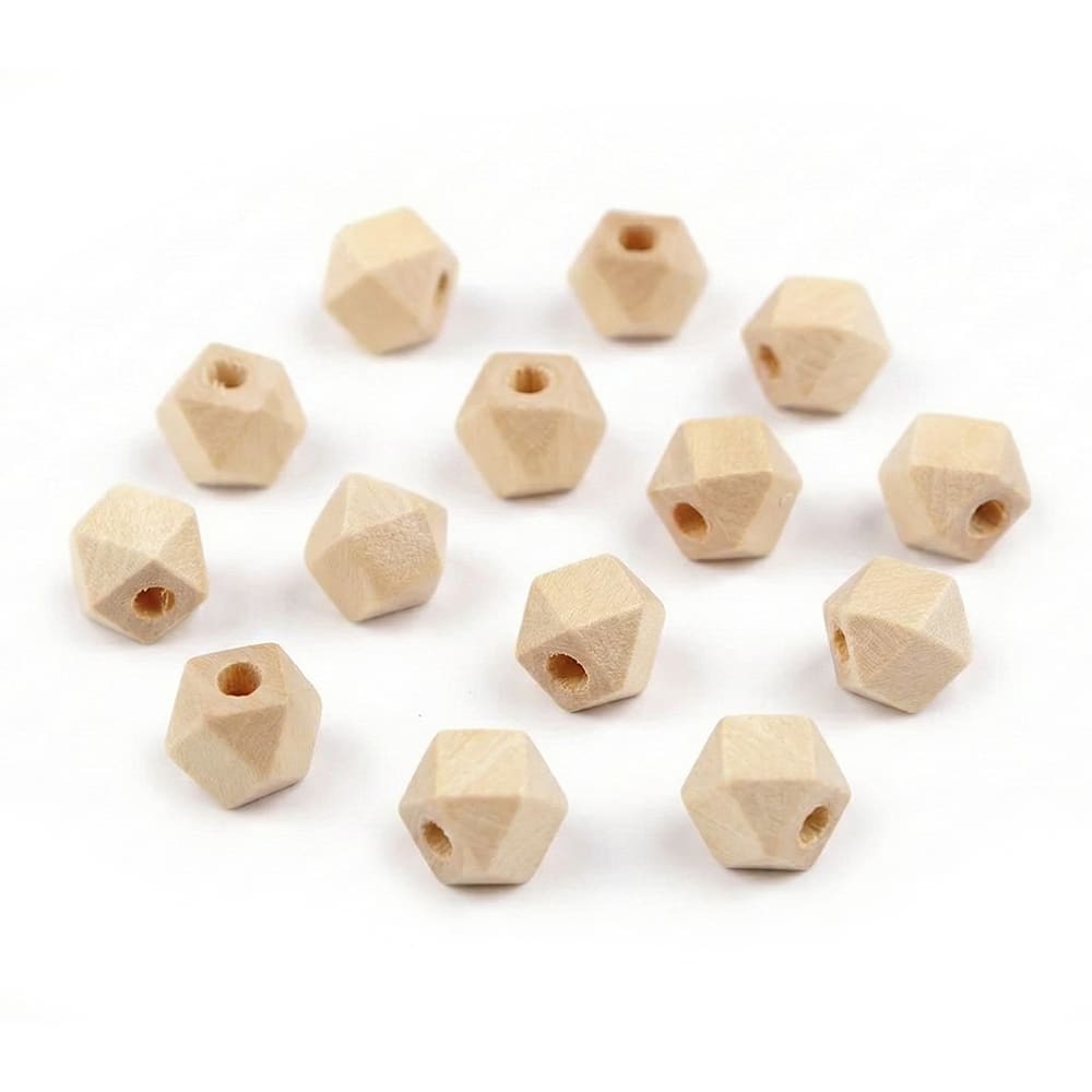 Holzperlen – 15 mm – Natur – eckig