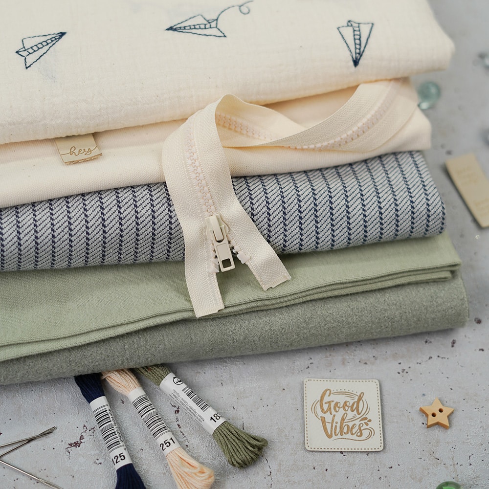 Die Farbkombination ist elegant und zeitlos. Egal, ob chic oder lässig – ihr könnt damit sämtliche Looks zusammenstellen und ihn zu jeder Gelegenheit tragen. Wie wäre es mit einem schicken Sweater bzw. Shirt oder einem modischen Mantel? Auch eine lässige Hose, ein bequemer Hoodie oder ein sportliches Kleid sehen toll daraus aus. An kälteren Tagen ist dieser weiche Jersey auch perfekt für Loopschals oder Tücher.
