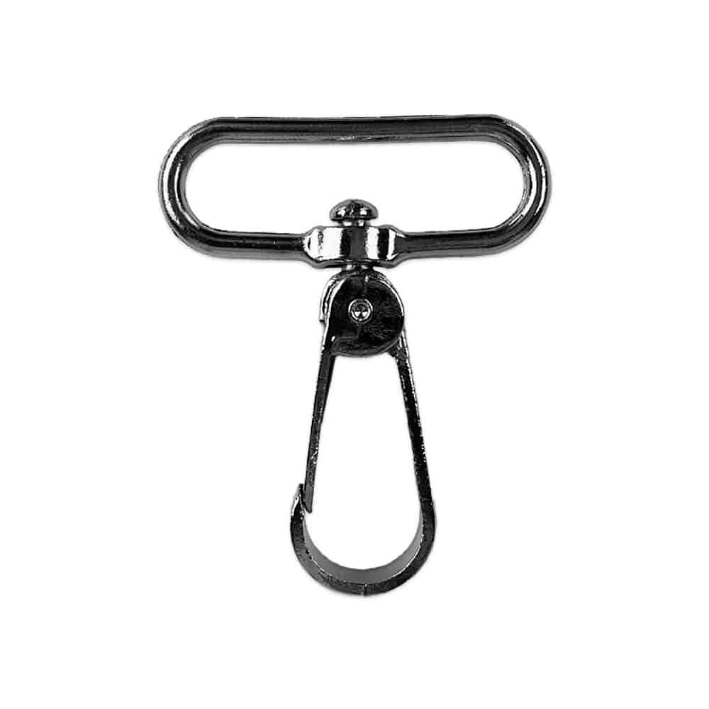 Der drehbare Karabiner aus Metall in der Farbe Anthrazit (Messing) eignet sich wunderbar zum Befestigen von Gurtbändern an Hand-/Sporttaschen, Shoppingbags, oder Rucksäcken. Dieser Karabiner ist mit einem Lochdurchmesser von 38 mm somit ein praktisches Utensil für verschiedene Alltagssituationen.
