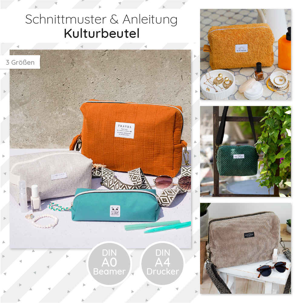 Kulturbeutel – Anleitung & Schnittmuster – 3 Größen