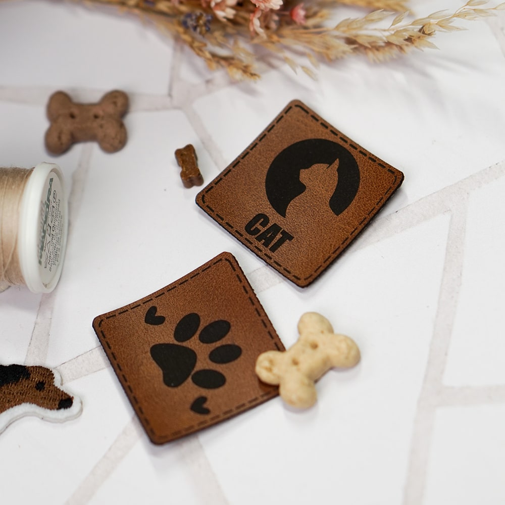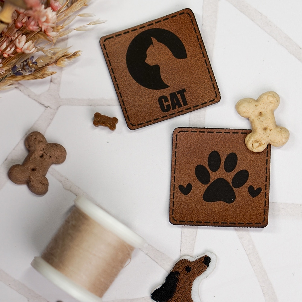 Label „Paw Hearts“ – 40 x 40 mm – Dunkles Lederbraun