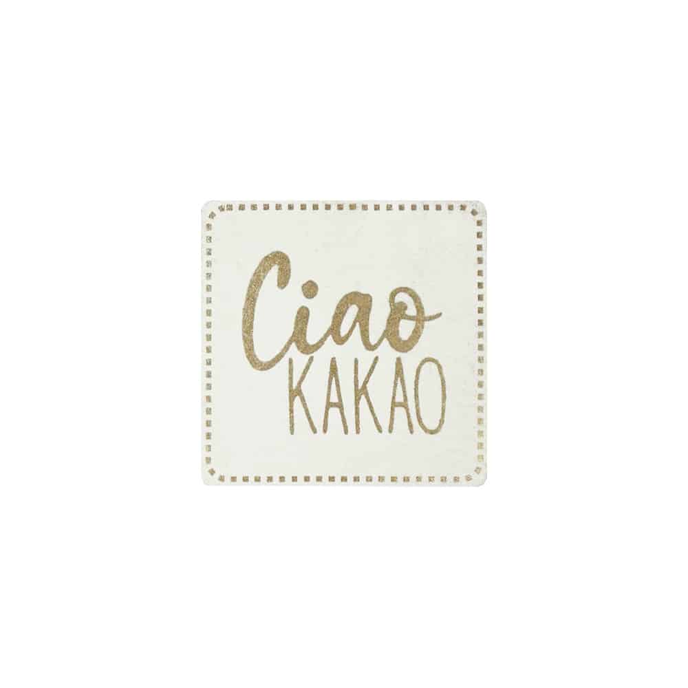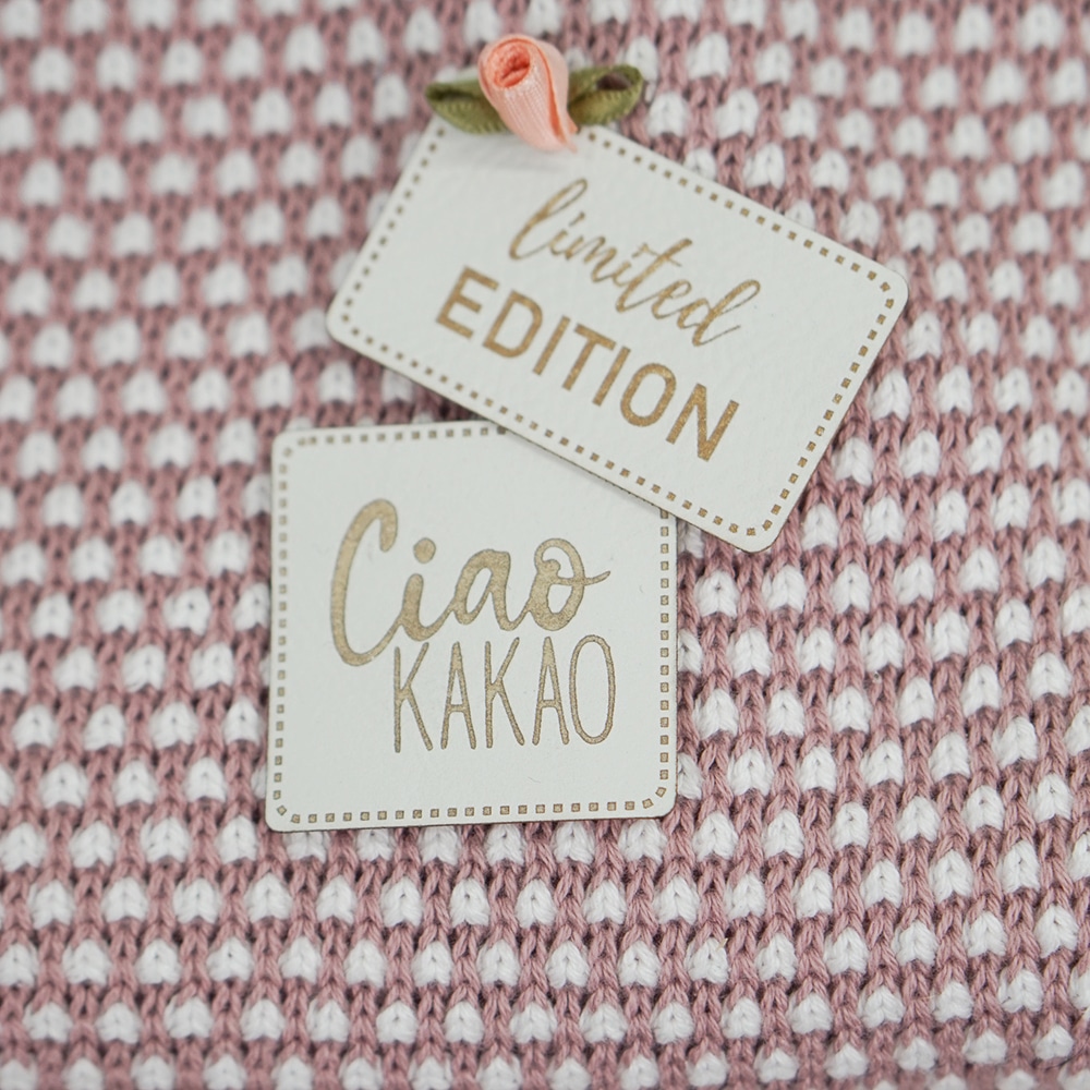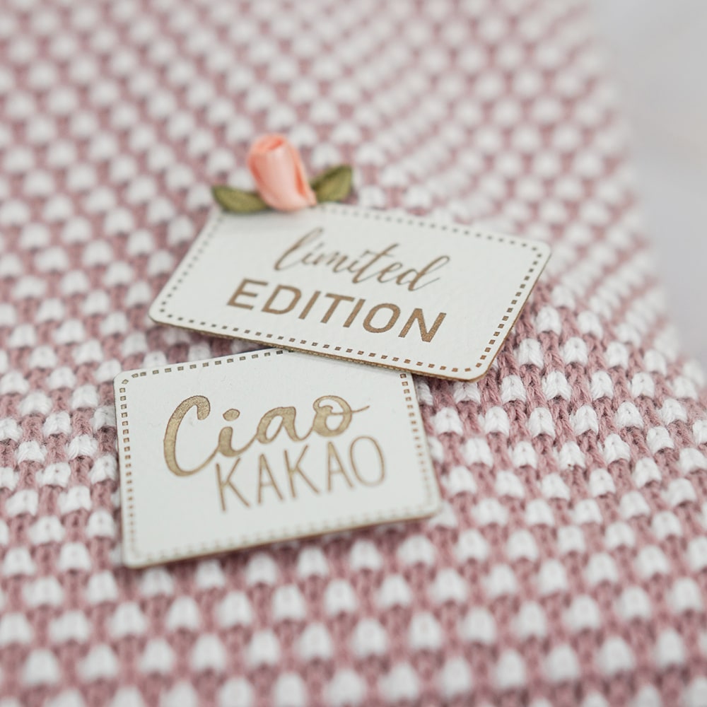 Das Label „Ciao KAKAO“ ist der Hingucker auf selbst genähten Stücken, wie zum Beispiel der Beanie Noel. Es besteht aus einem hellen Kunstleder und ist somit waschbar. Wir empfehlen, das Label vor dem Aufnähen mit dem wasserlöslichen Fixiermarker zu befestigen. Damit wird das Aufnähen leicht gemacht. Auch auf Latzhosen, Handschuhen oder Stirnbändern ist das Label mit seinem zeitlosen Design ein Highlight.