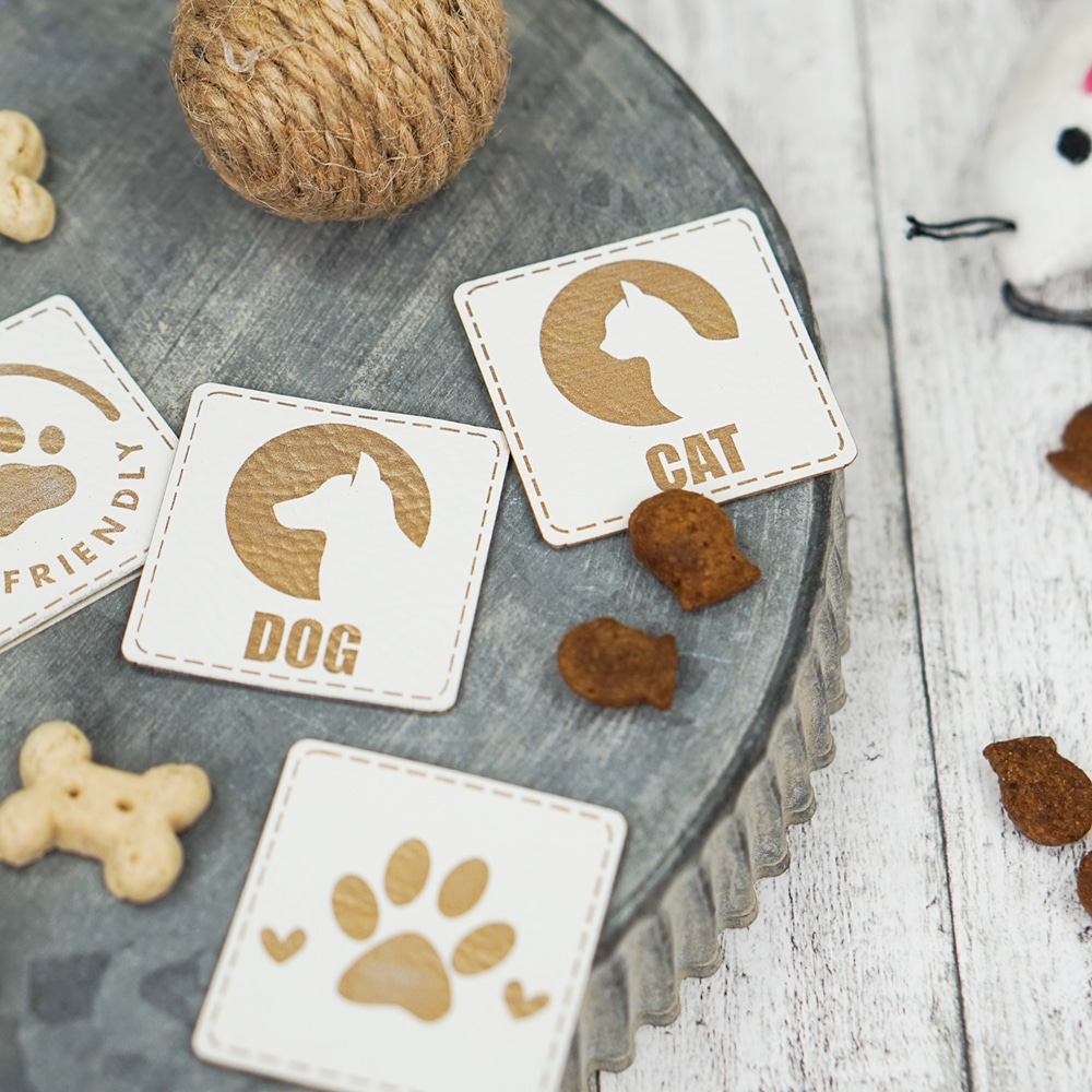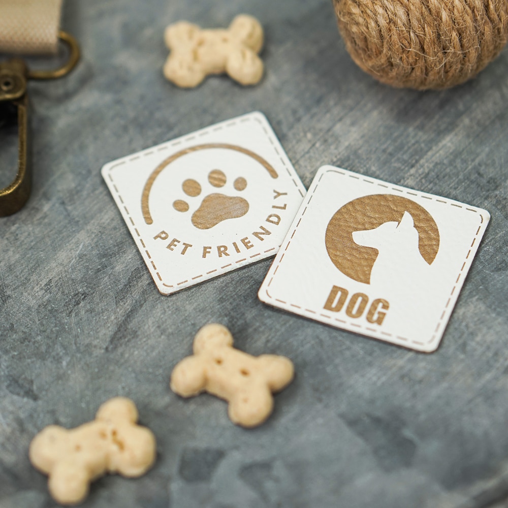 Label „Paw Pet Friendly“ – 40 x 40 mm – Dunkles Lederbraun