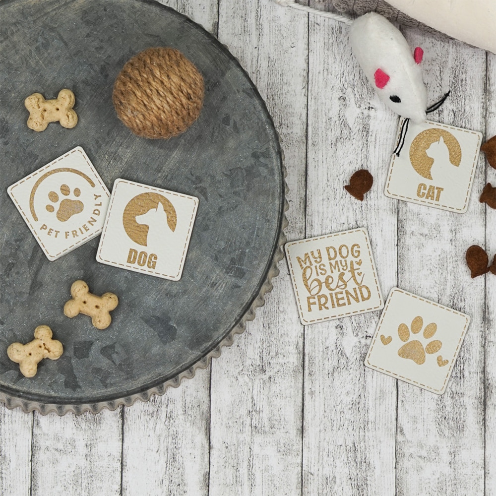 Label „Dog Best Friend“ – 40 x 40 mm – Dunkles Lederbraun