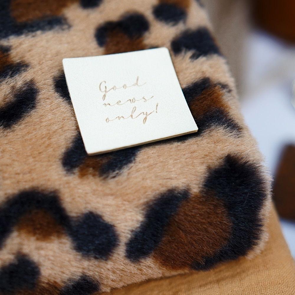 Das Label „good news only“ ist der Hingucker auf selbst genähten Stücken, wie zum Beispiel der Beanie Noel. Es besteht aus einem hellem Kunstleder und ist somit waschbar. Wir empfehlen, das Label vor dem Aufnähen mit dem wasserlöslichen Fixiermarker zu befestigen. Damit wird das Aufnähen leicht gemacht. Auch auf Latzhosen, Handschuhen oder Stirnbändern ist das Label mit seinem zeitlosen Design ein Highlight.