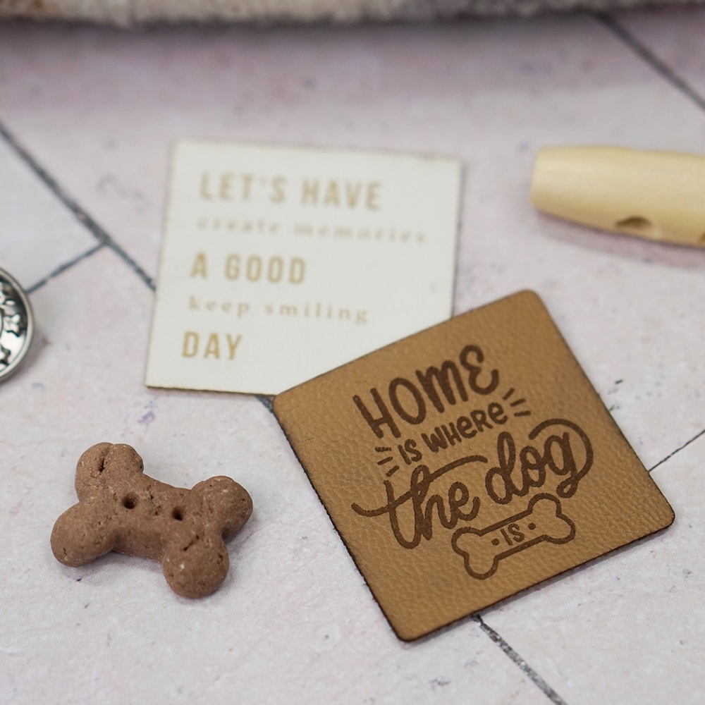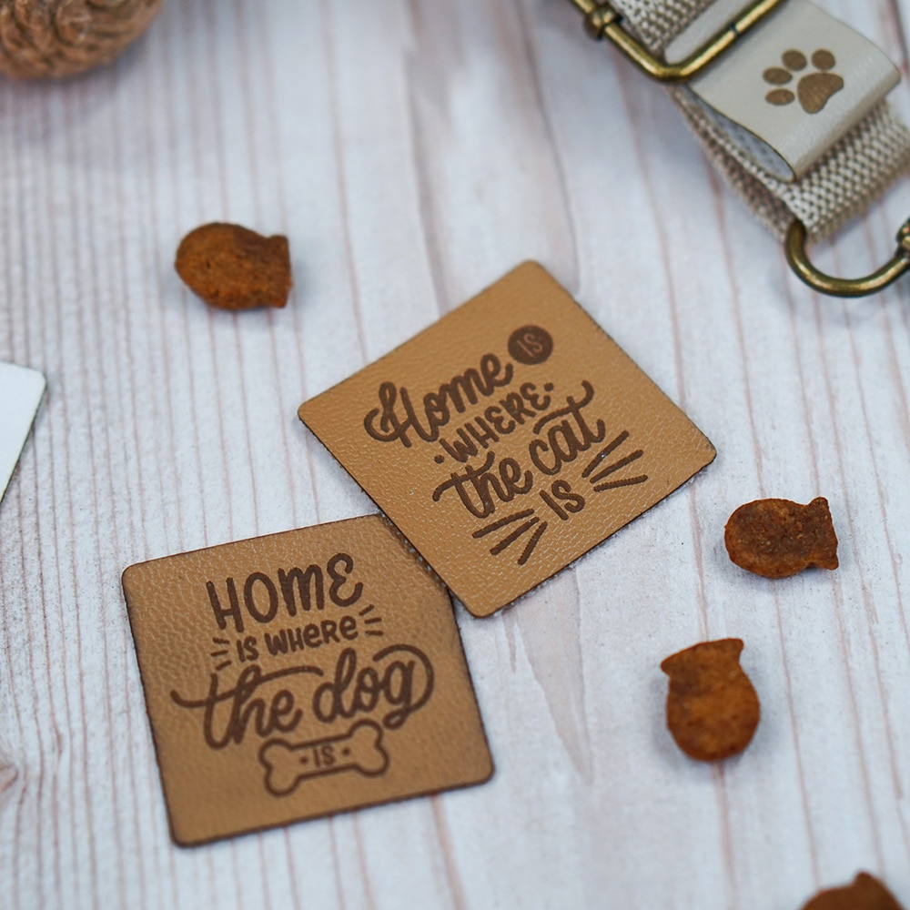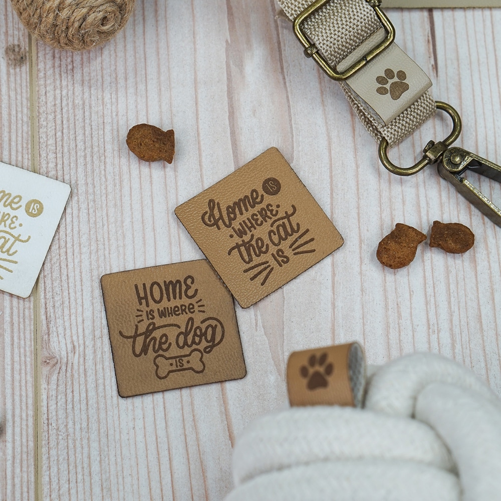 Label Home Is Where The Dog Is – 40 x 40 mm – Camel Braun
