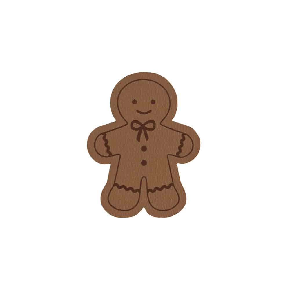 Das Label „Lebkuchenfigur“ ist ein wahrer Hingucker und mit seinem Design ein echter Klassiker. Auf selbstgenähten Stücken wie der Beanie Noel, Latzhosen, Kleidchen, Stirnbändern, Kosmetiktaschen, Strandtaschen, Shopping Bags, Cutline Crossbags ist das Label mit seinem hübschen Design ein Highlight. Es besteht aus einem Camel Braunen Kunstleder.