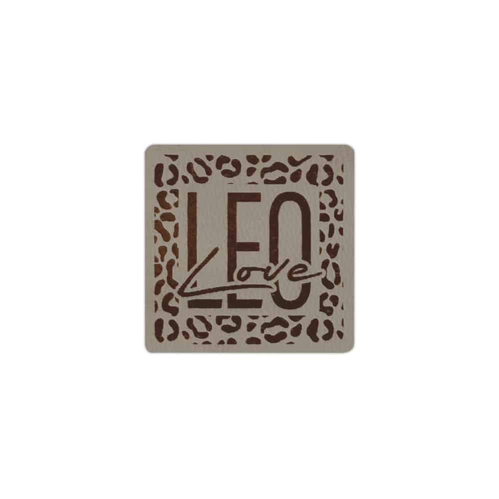 Label „Leo Love“ – 40 x 40 mm – Tan Beige