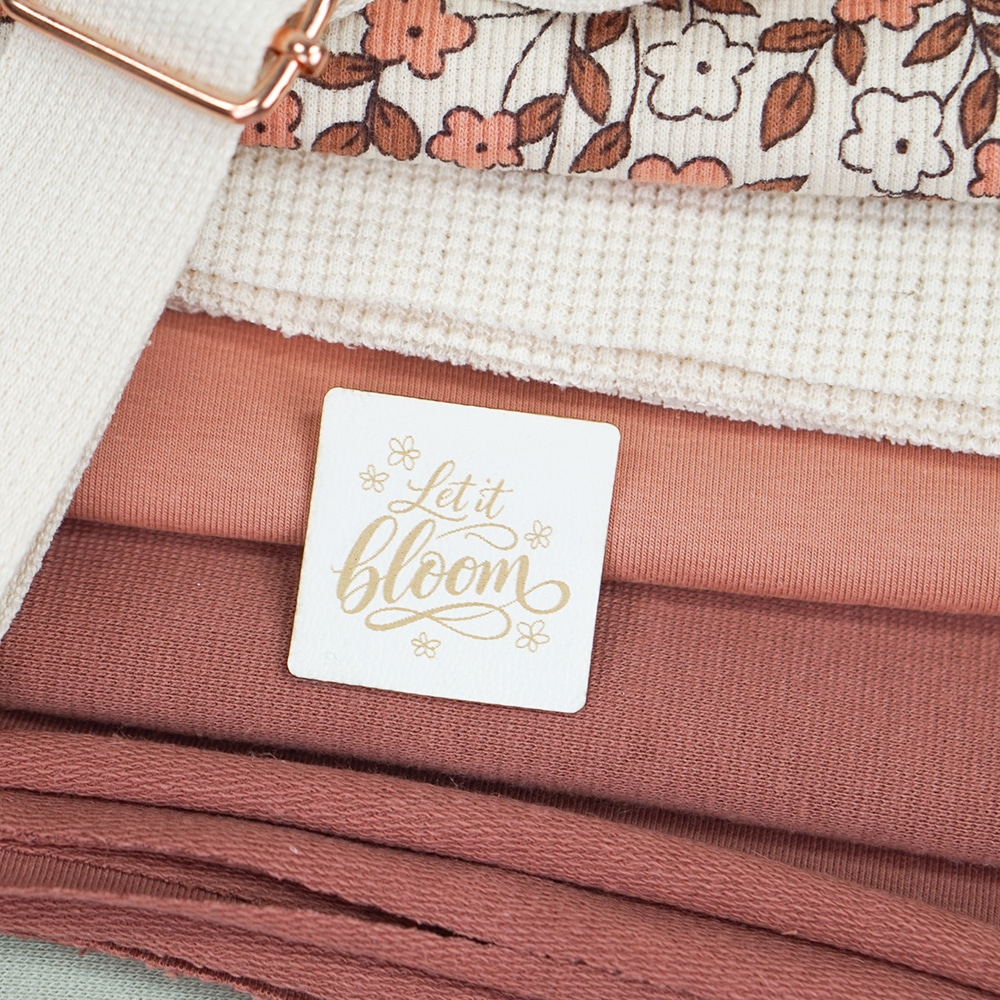 Das Label Let it bloom ist der Hingucker auf selbst genähten Stücken, wie zum Beispiel der Beanie Noel. Es besteht aus einem hellem Kunstleder und ist somit waschbar. Wir empfehlen, das Label vor dem Aufnähen mit dem wasserlöslichen Fixiermarker zu befestigen. Damit wird das Aufnähen leicht gemacht. Auch auf Latzkleidern, Handschuhen oder Stirnbändern ist das Label mit seinem zeitlosen Design ein Highlight.