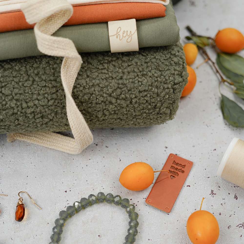 Das Label ist Aufschrift „Handmade with Love“ verziert, was eurem handgefertigten Stück Authentizität und Liebe zum Detail verleiht. Das passt vor allem gut, wenn ihr euer Nähprojekt verschenken wollt.