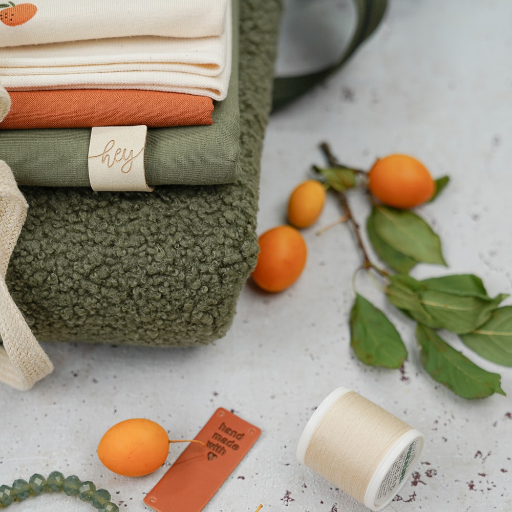 Das Label „hey“ist der Hingucker auf selbst genähten Stücken, wie zum Beispiel der Beanie Noel. Es besteht aus einem hellem Kunstleder und ist somit waschbar. Wir empfehlen, das Label vor dem Aufnähen mit dem wasserlöslichen Fixiermarker zu befestigen. Damit wird das Aufnähen leicht gemacht. Auch auf Latzhosen, Handschuhen oder Stirnbändern ist das Label mit seinem zeitlosen Design ein Highlight.