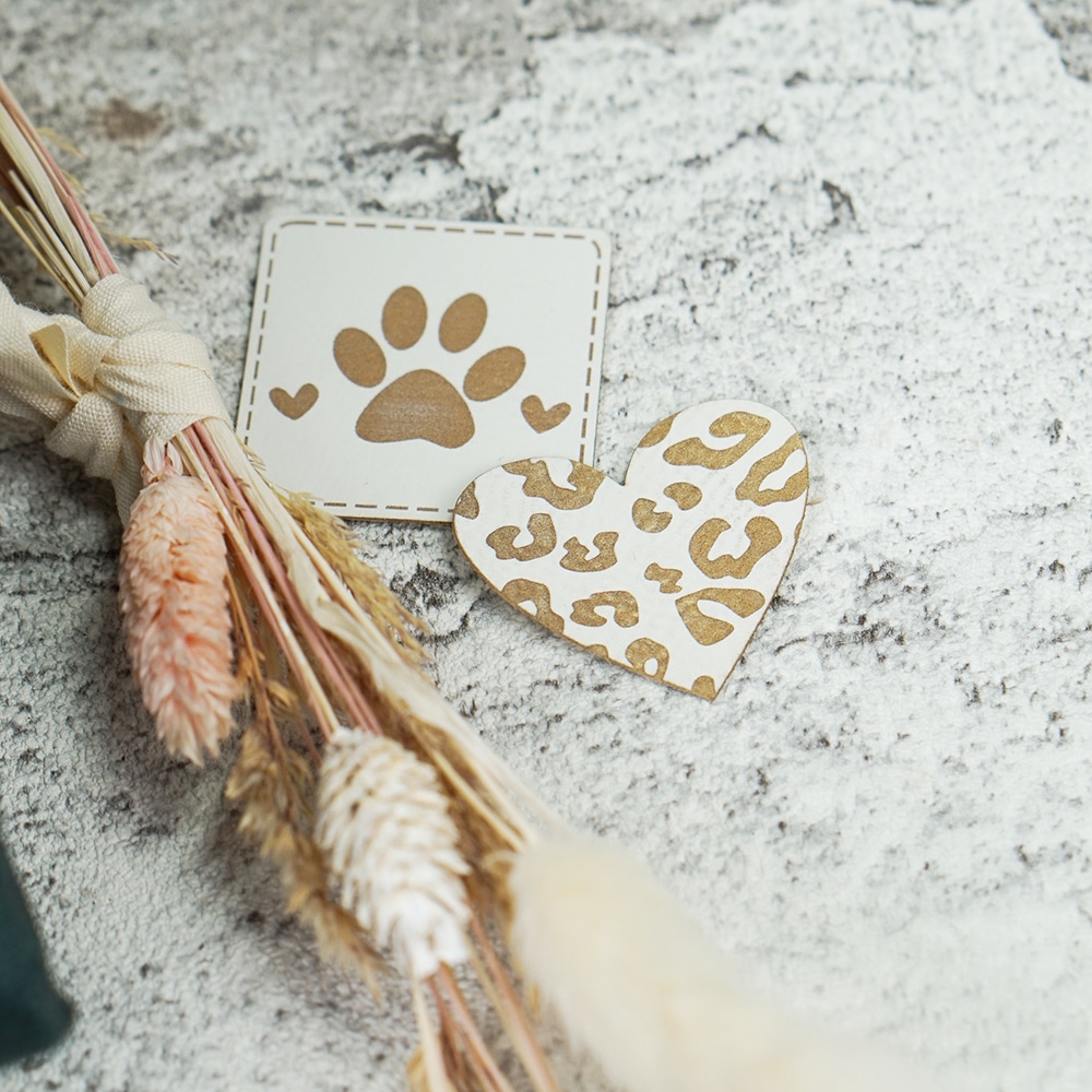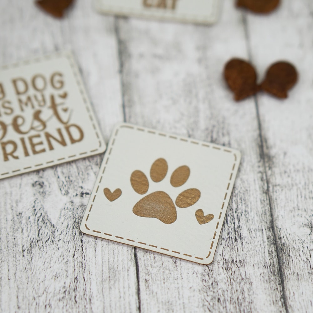Label „Paw Hearts“ – 40 x 40 mm – Staubweiß/Gold