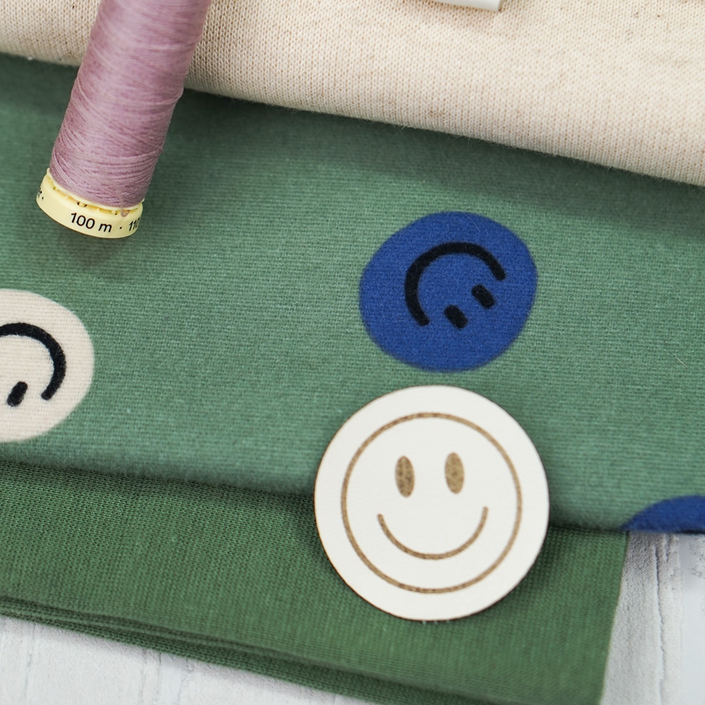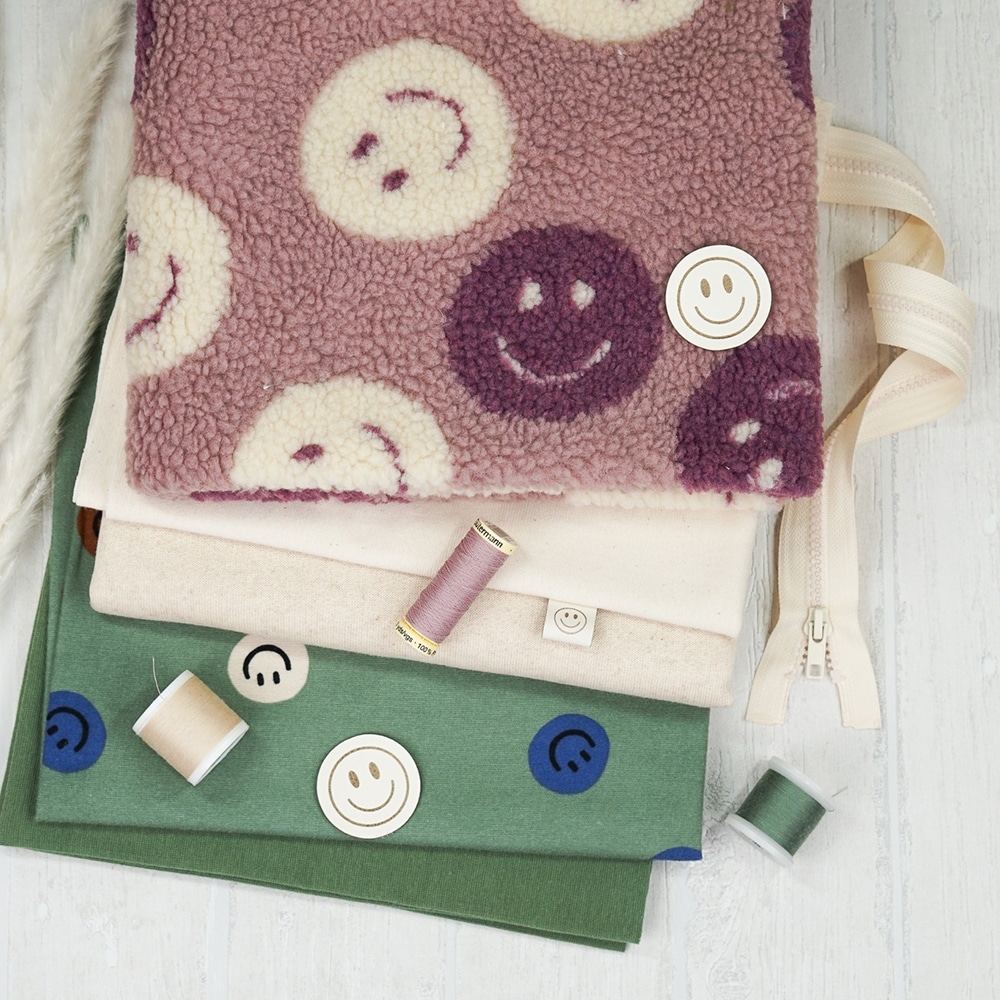 - Entdecke passend zum Label unsere Happy Face Fleece in Grey Blue, Mistelgrün & Antique Rose oder unsere Flanell Stoffe in Earth Green & Lavendel Rose