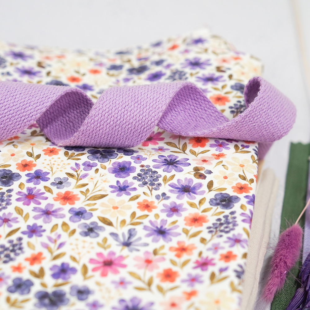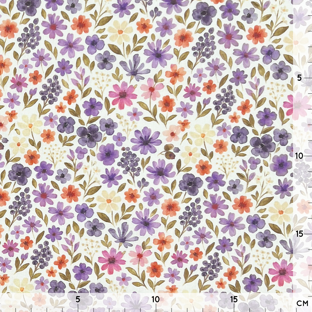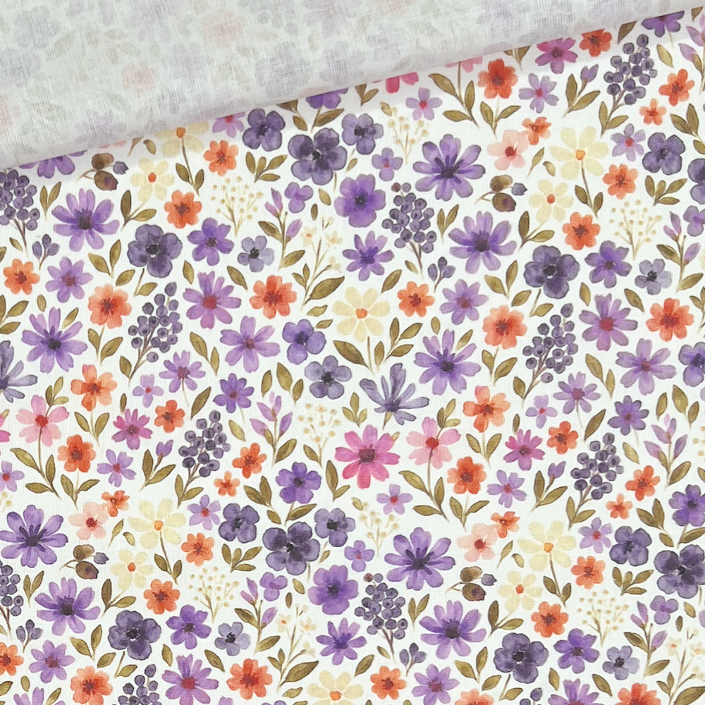 Leichter Baumwollstoff – Lavendel Blütenmeer – Weiß