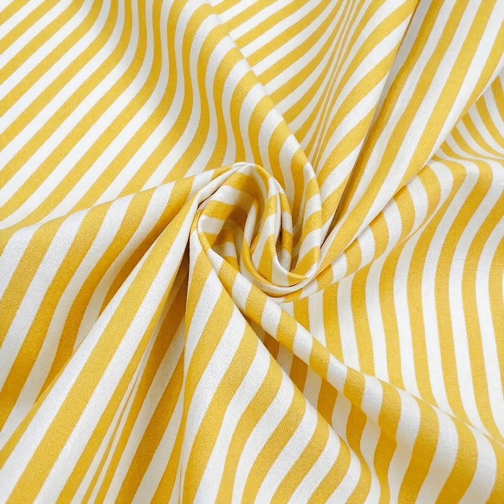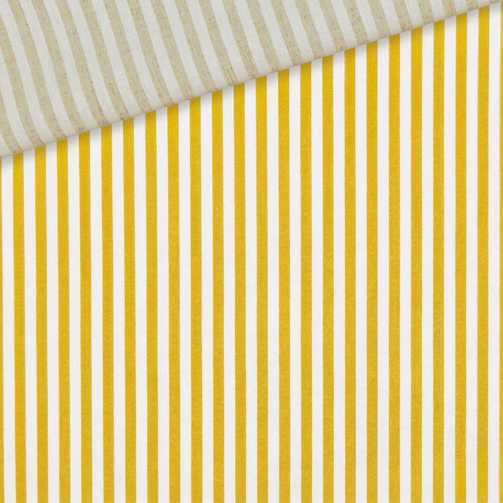 Leichter Baumwollstoff – Streifen Sonnengelb / Weiß bedruckt – 4 mm