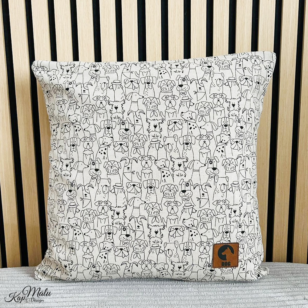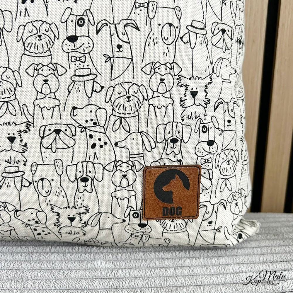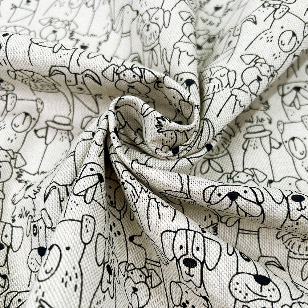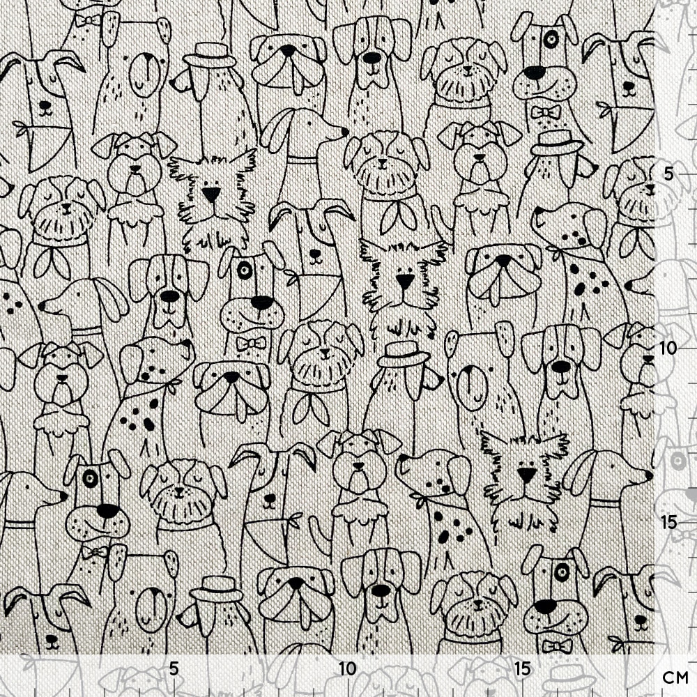 Leichter Canvas in Leinenoptik – Sketched Dogs – Dunkles Natur Melange