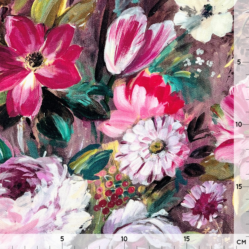 Aquarell Blumen zieren diesen leichten Canvas, der somit ein echter Hingucker wird und sich bestens Dekostoff für beispielsweise Kissenbezüge, Utensilos und Taschen eignet. Das Mischgewebe ist nicht nur atmungsaktiv und stabil, sondern aufgrund seiner Struktur auch langlebig. Da dieser Canvas leicht ist, lassen sich sogar Kleider oder Röcke wunderbar daraus nähen. Die Vorderseite ist mit einem wunderschönen Blumen-Motiv bedruckt.