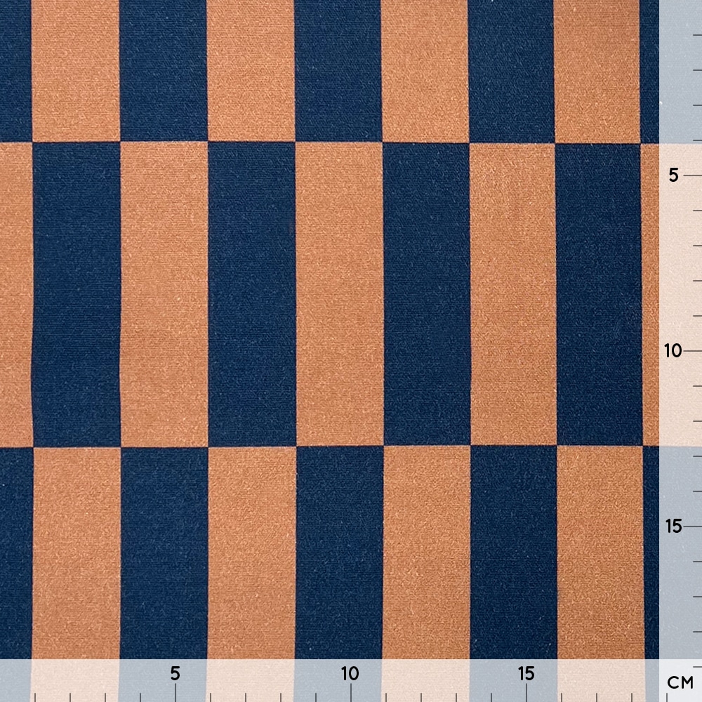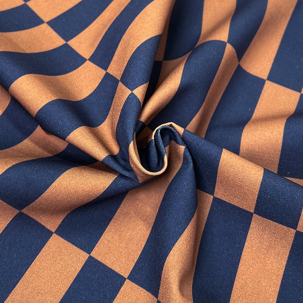Ein tolles Blockmuster in Kupfer-/Blautönen ziert diesen leichten Canvas, der somit ein echter Hingucker wird und sich bestens Dekostoff für beispielsweise Kissenbezüge, Utensilos und Taschen eignet. Das Mischgewebe ist nicht nur atmungsaktiv und stabil, sondern aufgrund seiner Struktur auch langlebig. Da dieser Canvas leicht ist, lassen sich sogar Kleider oder Röcke wunderbar daraus nähen.