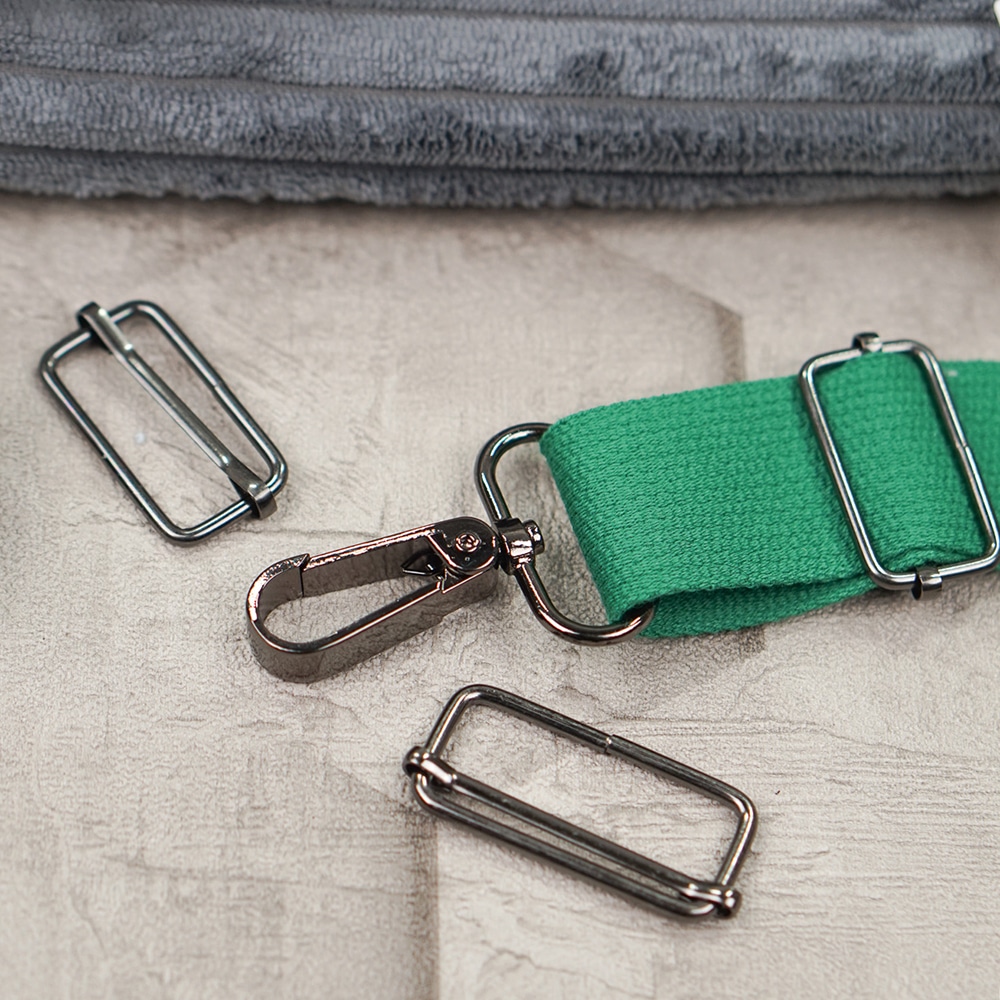 Ihr wollt das Gurtband mit einem Handgriff auch mal wechseln können? Mit unserem passenden Karabinerverschluss (32 mm – Anthrazit) könnt ihr es im Handumdrehen lösen und wieder einklicken.