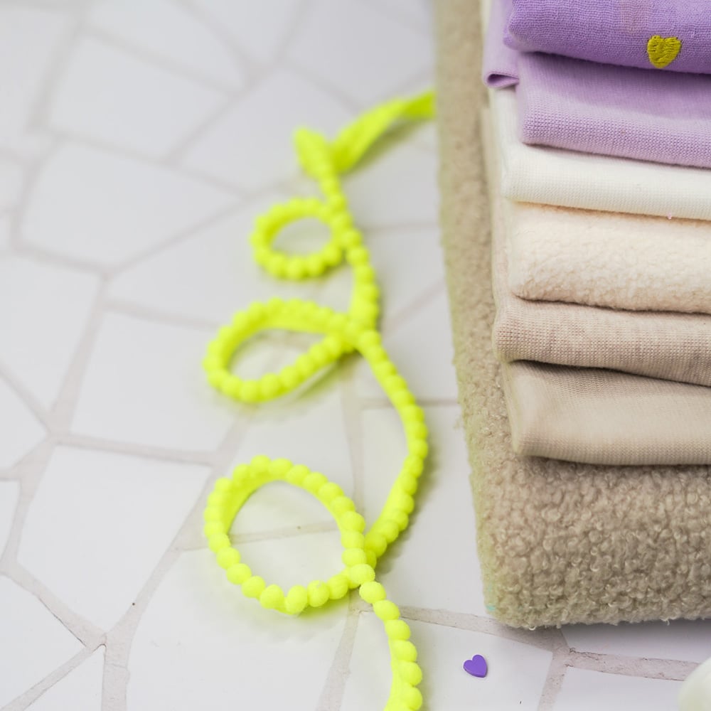 Start » Shop » Zutaten & Zubehör » Bänder und Kordeln » Pomponborten » Mini Pomponborte – Neon Gelb