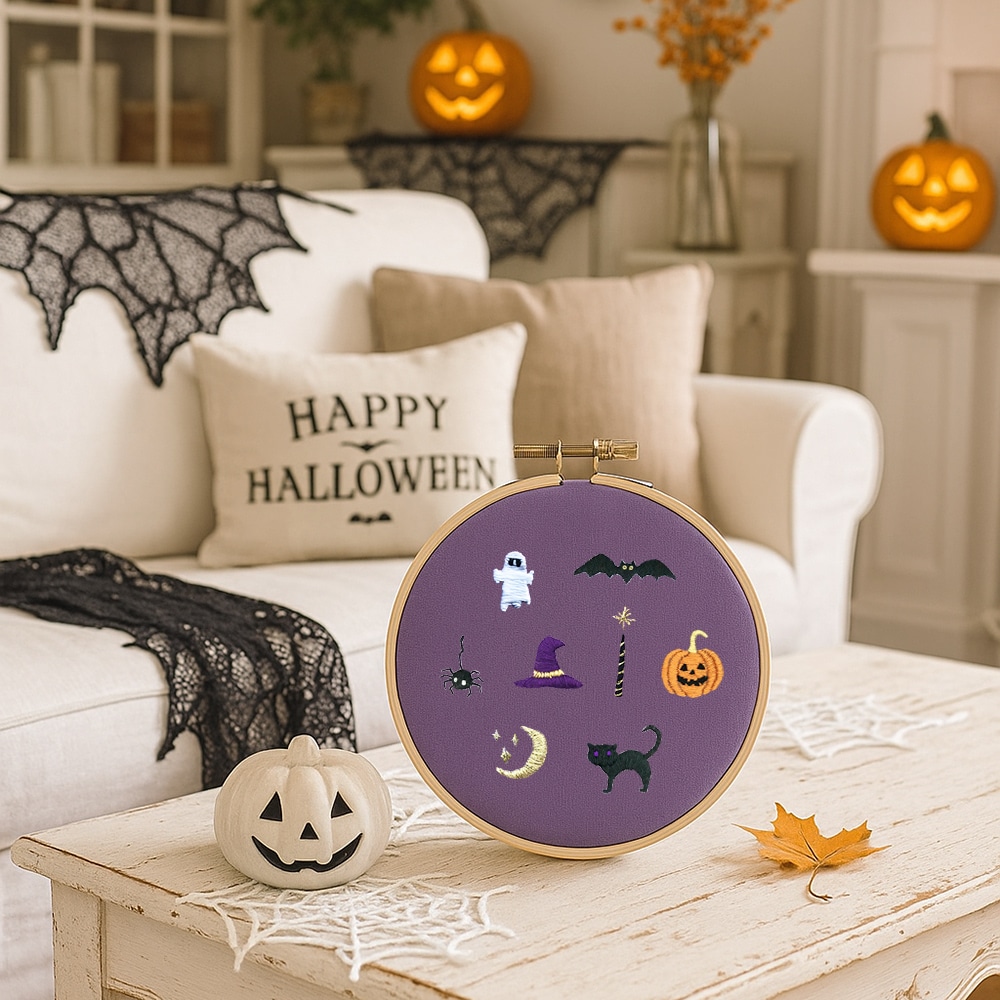 Das Set ist ideal zum Verzieren von Taschen und Kleidung. Schlichte Basic-Kleidungsstücke lassen sich damit im Handumdrehen in Halloween-Outfits verwandeln – perfekt für kleine und große Gruselfans. Als Wanddeko im Stickrahmen bringt ihr im Handumdrehen gespenstisch-schöne Stimmung in euer Zuhause.