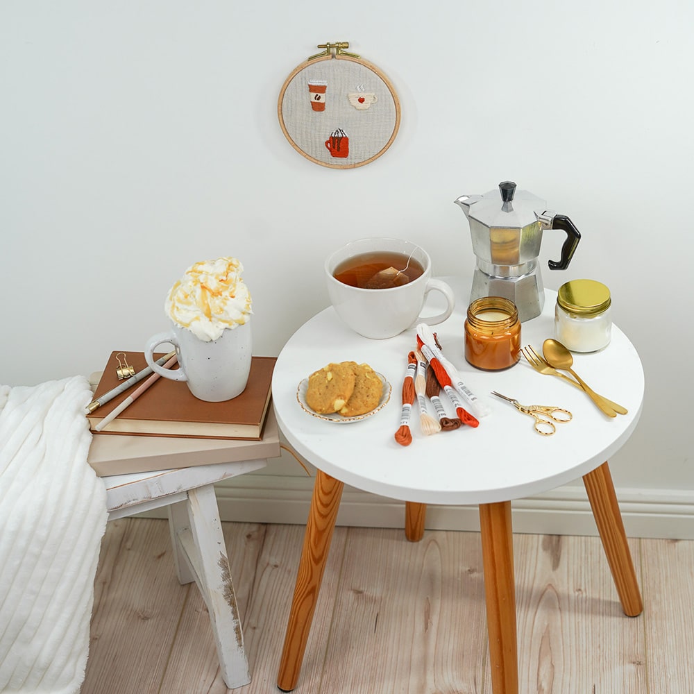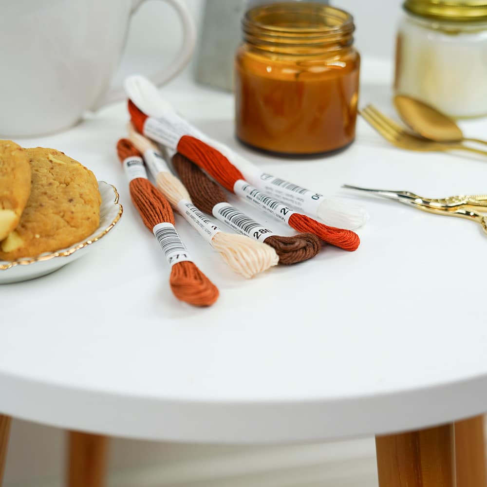 Mit dem Set erhaltet ihr neben den fünf Sticktwisten (Farben: 002, 251, 257, 271, 280) zusätzlich die Stickvorlage „Hot-Drinks“. Die Vorlage enthält keine Stickanleitung – ihr findet aber darin Hinweise zu den verwendeten Stichen, zu der Anzahl der Fäden und einige weitere Tipps. Das Motiv entsteht mit einfachen Grundstich, weshalb es auch bestens für Anfänger geeignet ist.