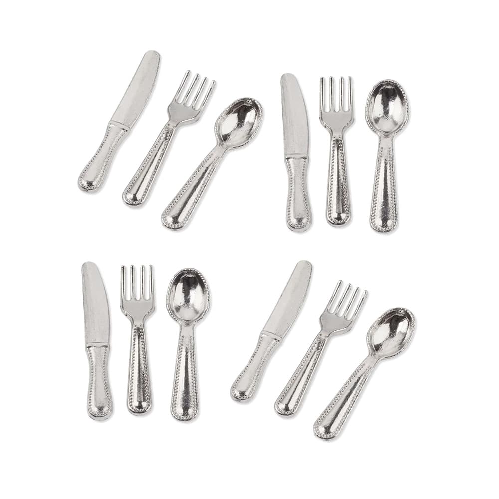Das Besteck hat eine Größe von ca. 2 cm und besteht aus je 4 Gabeln, Löffeln & Messern.