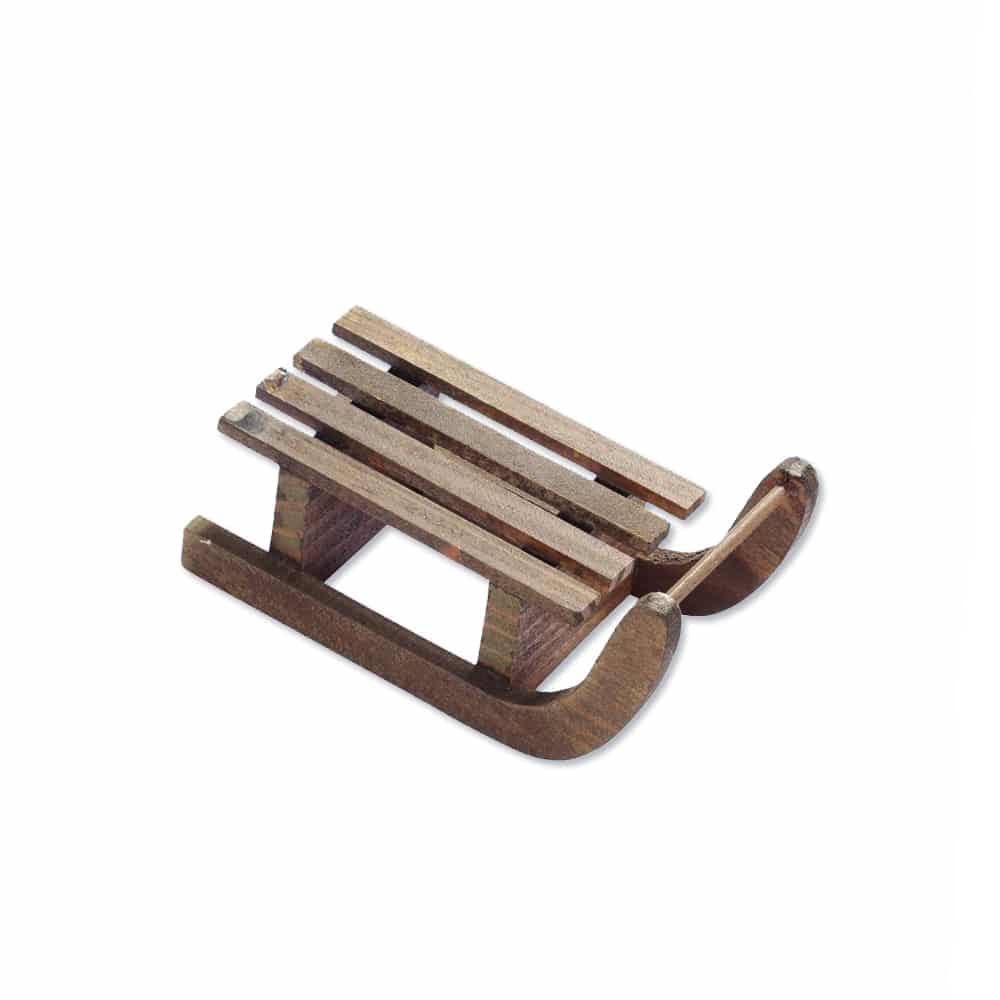 - Kleiner Holzschlitten in Miniaturgröße.