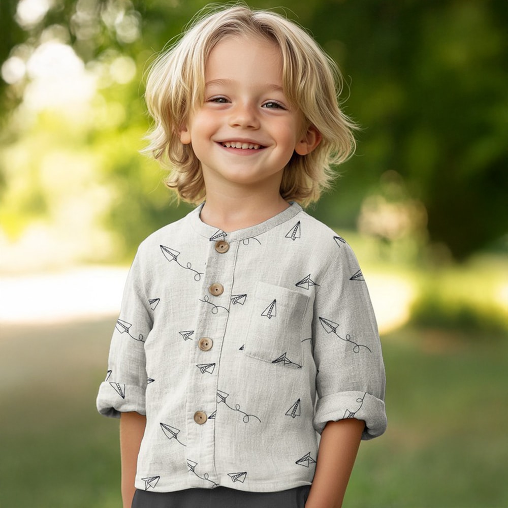 Musselin – gestickte Papierflieger – Natur Sprenkel