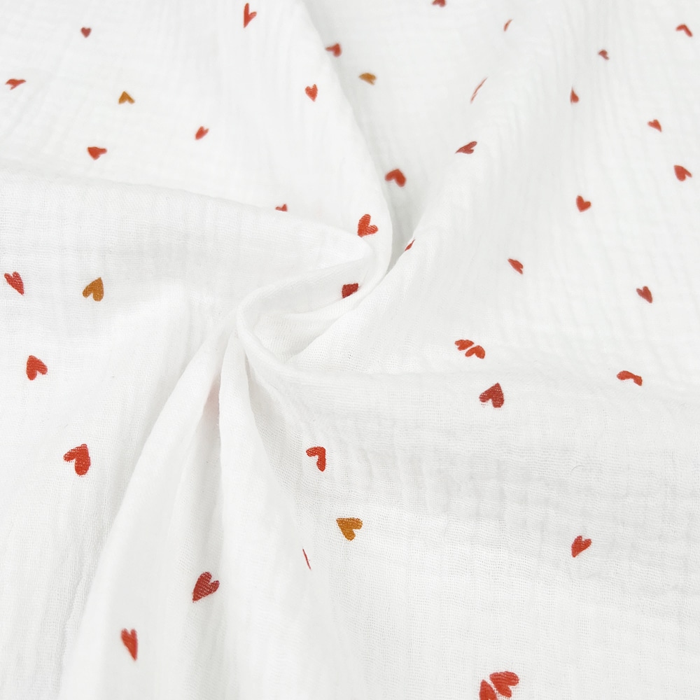 Musselinstoff besteht zu 100% aus Baumwolle. Als weicher, luftiger und saugfähiger Stoff ist Musselin nicht nur für Windeln geeignet, sondern auch für sommerliche Kleidungsstücke wie Kleidchen, leichte Hosen und Röcke. Besonders schön sind auch Haarbänder, welche aus diesem leicht fallenden Baumwollstoff genäht sind. Er kann sogar als Futterstoff verwendet werden. Aufgrund seiner zwei Lagen wird Musselin auch Double Gauze genannt.