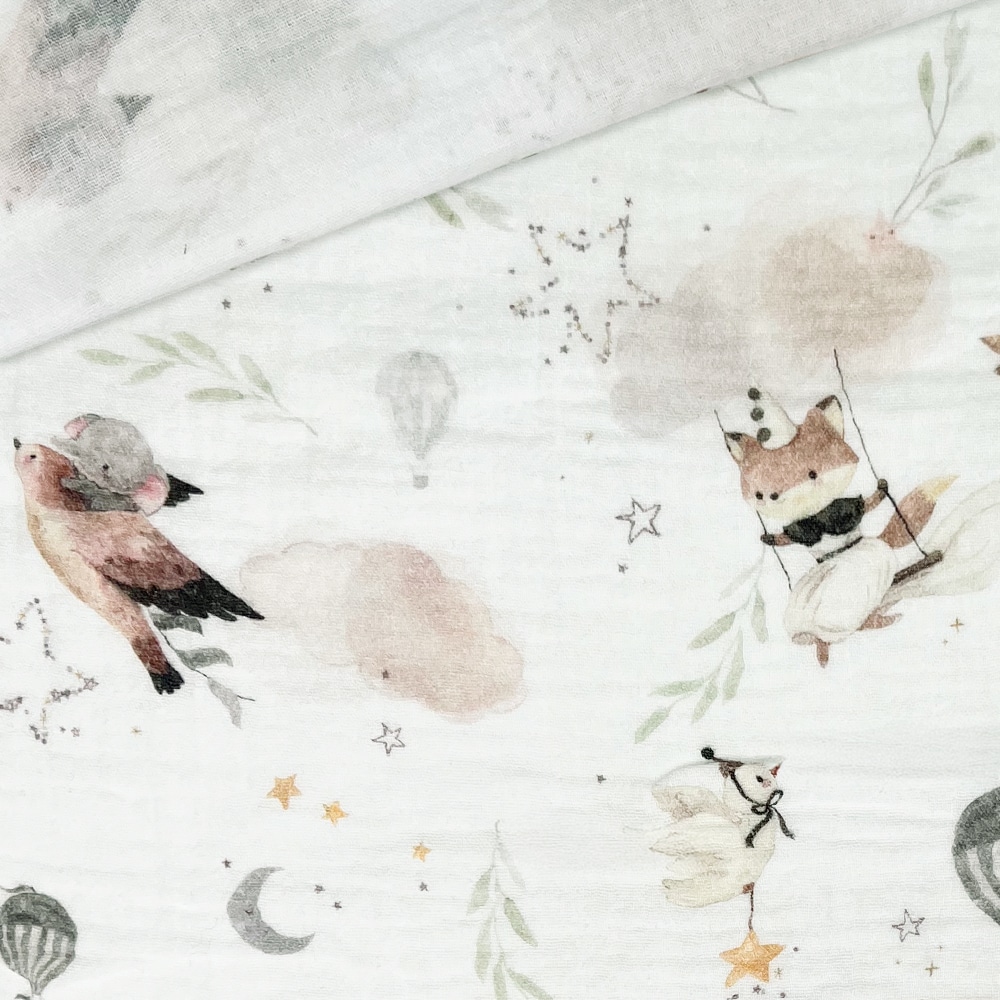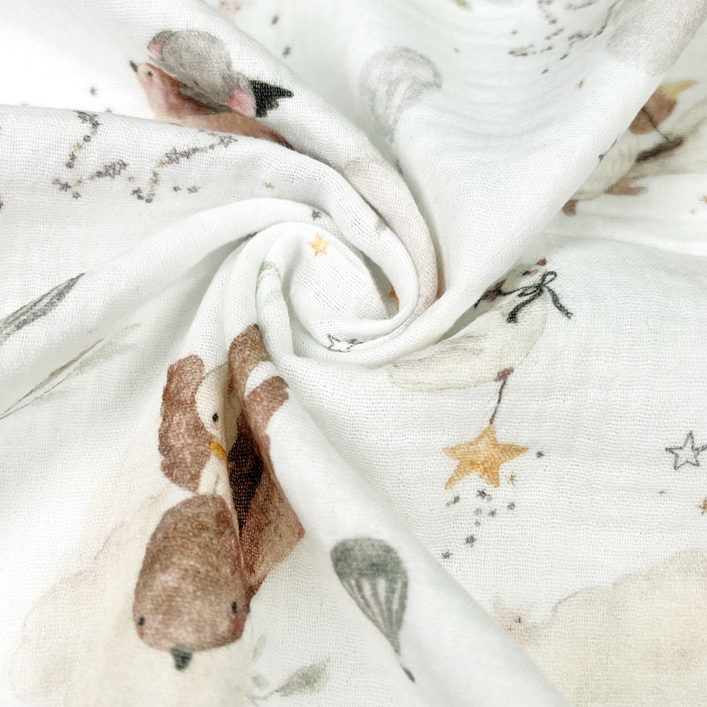 Musselinstoff besteht zu 100% aus Baumwolle. Als weicher, luftiger und saugfähiger Stoff ist Musselin nicht nur für Windeln geeignet, sondern auch für sommerliche Kleidungsstücke wie Kleidchen, leichte Hosen und Röcke. Besonders schön sind auch Haarbänder, welche aus diesem leicht fallenden Baumwollstoff genäht sind. Er kann sogar als Futterstoff verwendet werden. Aufgrund seiner zwei Lagen wird Musselin auch Double Gauze genannt.