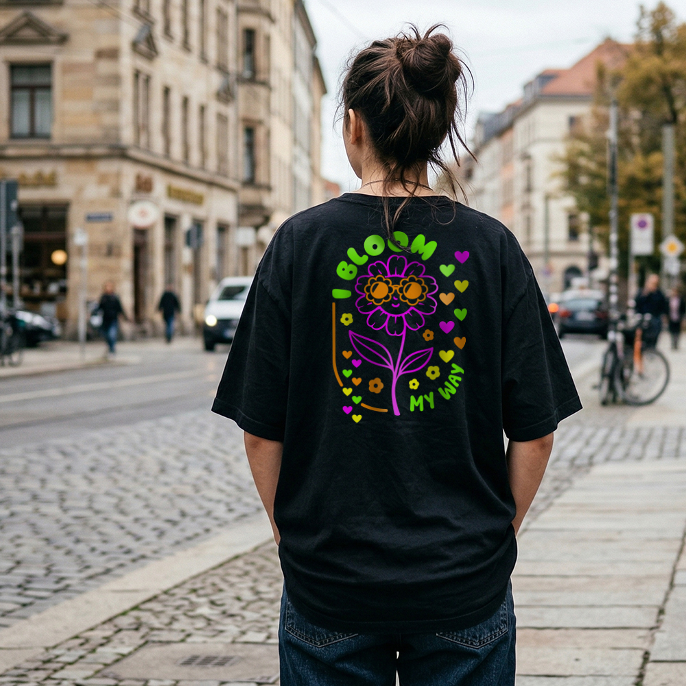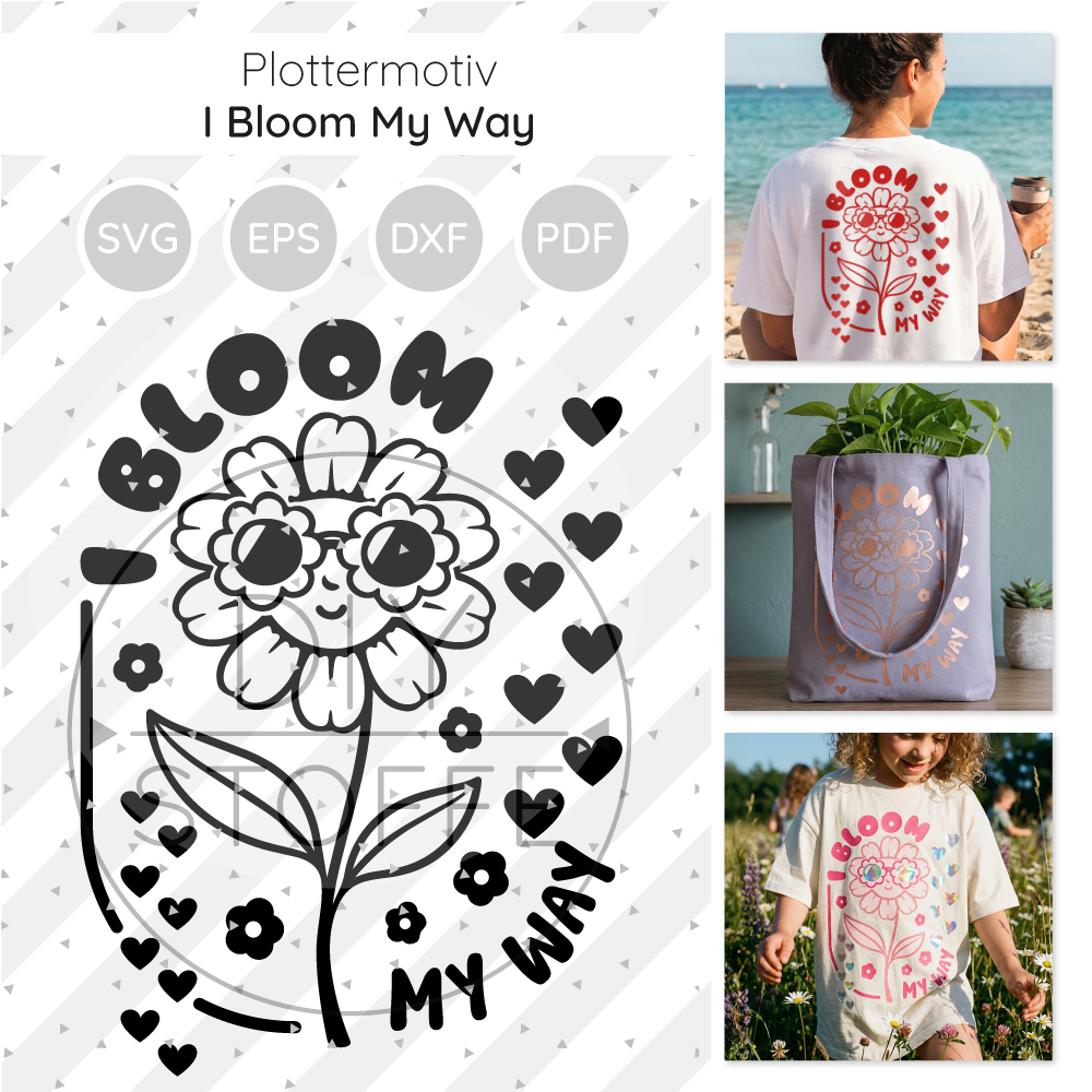 Mit dem Plottermotiv I bloom my way setzt ihr ein schönes Statement auf Kleidung und Deko und zeigt, dass jeder auf seine eigene Weise aufblüht – einzigartig und wertvoll.