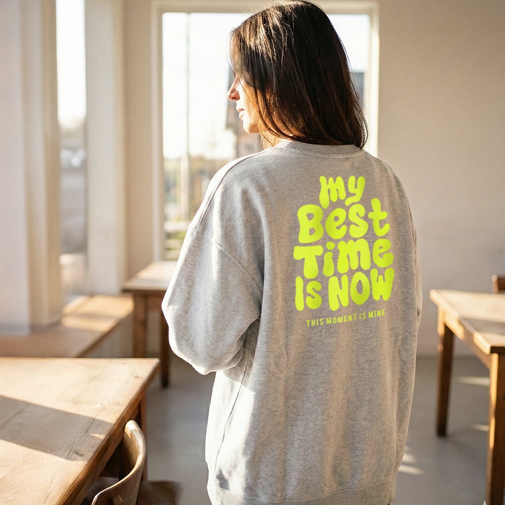 - Verschönert mit dem Plottermotiv „My best time is now“ Shirts, Deko-Elemente und Accessoires.