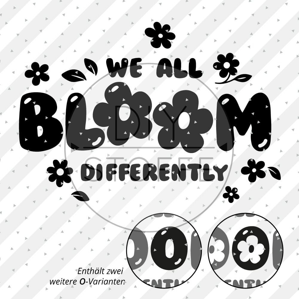 Mit dem Plottermotiv We all bloom differently setzt ihr ein schönes Statement auf Kleidung und Deko und zeigt, dass jeder auf seine eigene Weise aufblüht – einzigartig und wertvoll.