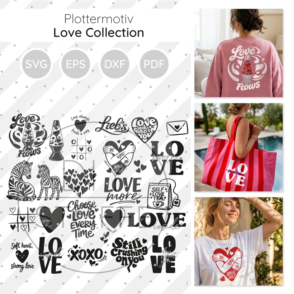 - Verschönert mit den Plottermotiven aus dem Love Collection – Mix Shirts, Taschen, Kissen, Sweater, Hoodies und vieles mehr. Lasst eurer Kreativität freien Lauf.