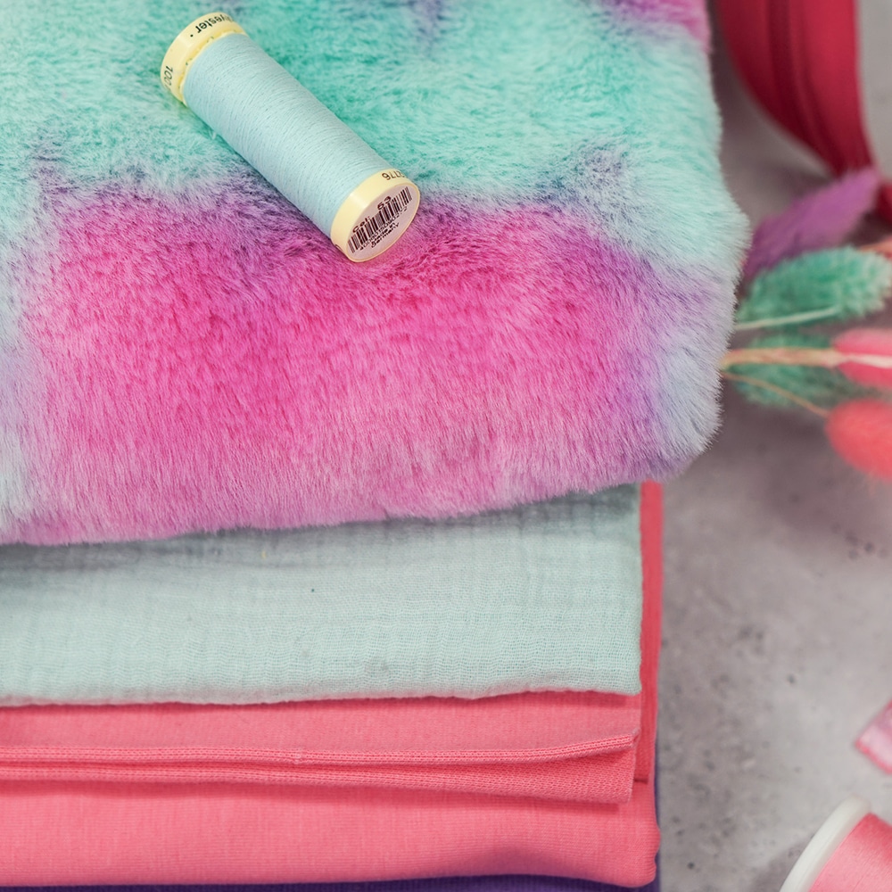 Dieser außergewöhnliche Plüschfleece mit lebendigem Farbverlauf eignet sich hervorragend für Faschings- & Karnevals-Bekleidung, sowie zur Dekoration oder für Bastelprojekte. Der Stoff zeichnet sich durch eine kuschelige rechte und eine glatte linke Stoffseite (Rückseite festes Gewebe) aus. Der Stoff fällt fließend weich, ist sehr leicht, knitterfrei und wärmeisolierend.