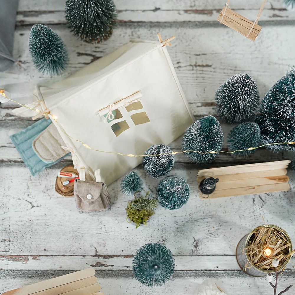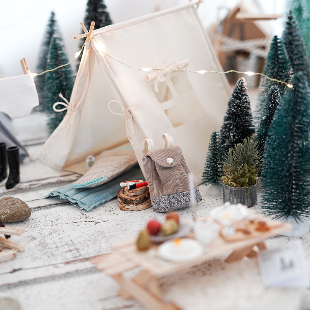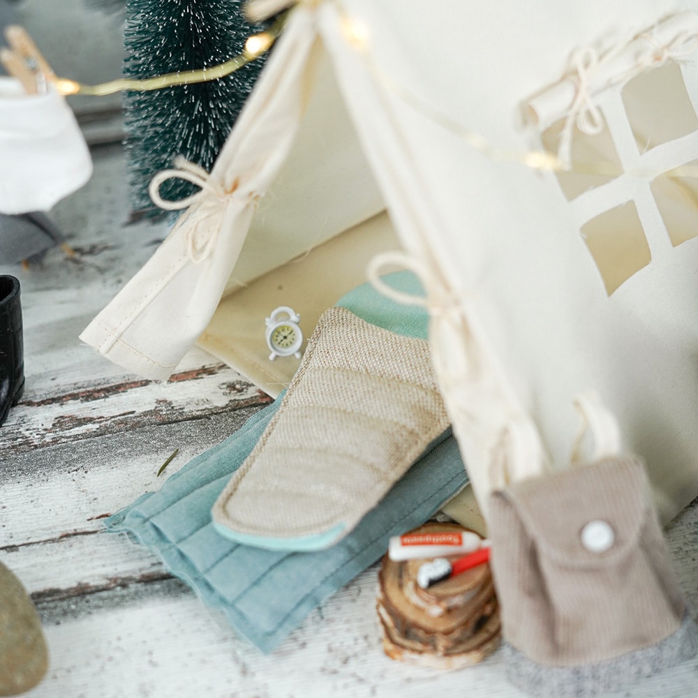 - Nach einem langen Tag voller Abenteuer zieht sich der Wichtel in sein gemütliches Zelt aus Baumwollstoff zurück – sein kleines Zuhause für traumhafte Nächte im Miniatur-Abenteuerland.
